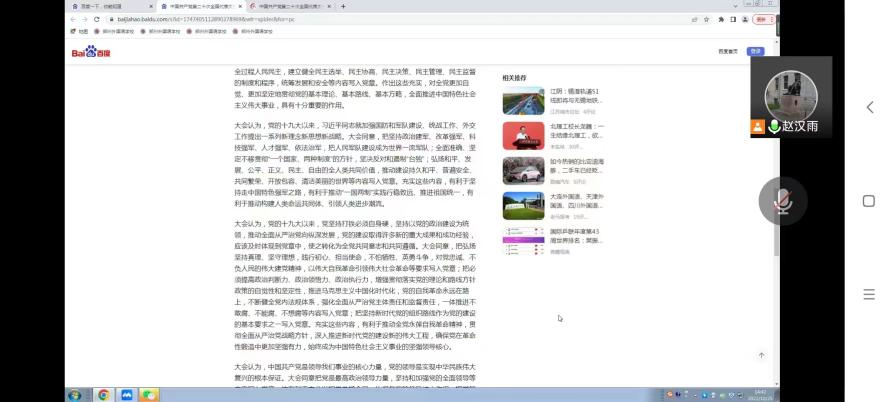 通过上午的学习,我收获颇多。一是深化了习近平新时代中国特色社会主义思想的认识和理解,进一步提高了思想站位。在今后政治学习中应长期坚持习进平新时代中国特色社会主义思想“十个明确”、“十四个坚持”、“十三个成就”等方面内容的学习,将马克思主义基本原理同中国具体实际相结合,坚持利用辩证唯物主义和历史唯物主义解决工作和生活中遇到的各种难题。二是深化了对新时代新征程中国共产党使命任务的理解,未来五年是全面建设社会主义现代化国家开局起步的关键时期。作为一名共产党员,我有责任也有义务为我国全面建成社会主义现代化强国贡献出自己的力量,要坚持发扬斗争和不怕苦的精神,遇事要知难而进、迎难而上,全力战胜前进道路上的各种困难和挑战。三是要结合工作实际,学习贯彻党的二十大精神,为我国实施科教兴国战略,强化现代化建设人才支撑贡献自己的力量。作为一名高校教师,要坚持做好自己的本职工作,坚守道德底线,坚持以学生为中心,因材施教,在课堂上注重学生创新实践能力和科研精神的培养,努力把学生培养成为国家现代化建设的后备军。