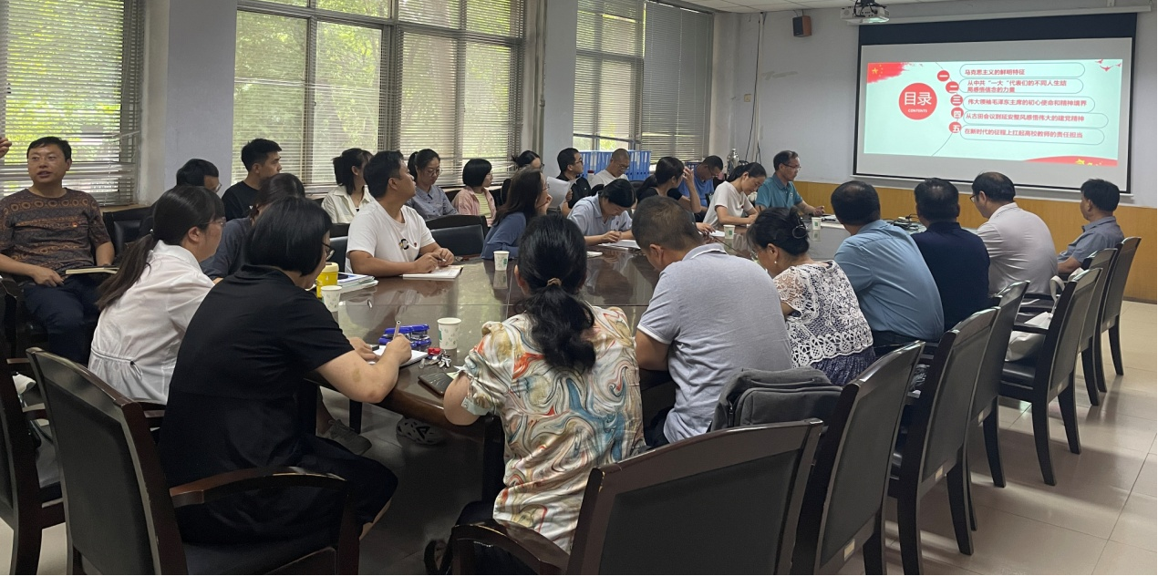 会议分两个阶段进行。第一个阶段邀请李世欣书记做党课报告。李世欣书记以《筑牢信仰之基 把稳思想之舵 在新时代的征程上扛起高校教师的责任担当》为题开展党课教育,从“马克思主义鲜明特征”、“中共‘一大’代表们不同结局感悟信念力量”、“新时代人民教师的担当”三个方面进行深入阐释。李世欣书记以丰富的史料、生动的事例阐述了坚定马克思主义信仰和坚定共产主义理想信念的重大意义,同时以“四有”标准激励教职工扛起新时代高校教师的责任担当。整场专题党课内容丰富、生动形象。