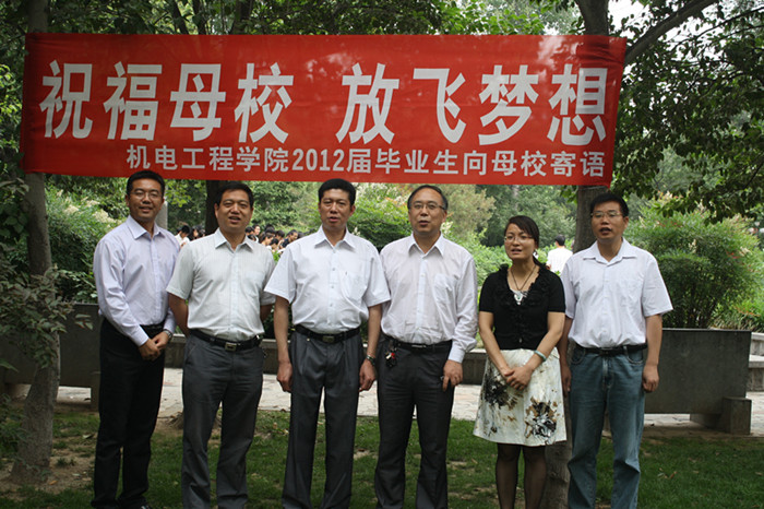 在校区三号楼前举办了2012届毕业生合影留念和为母校献祝福活动。