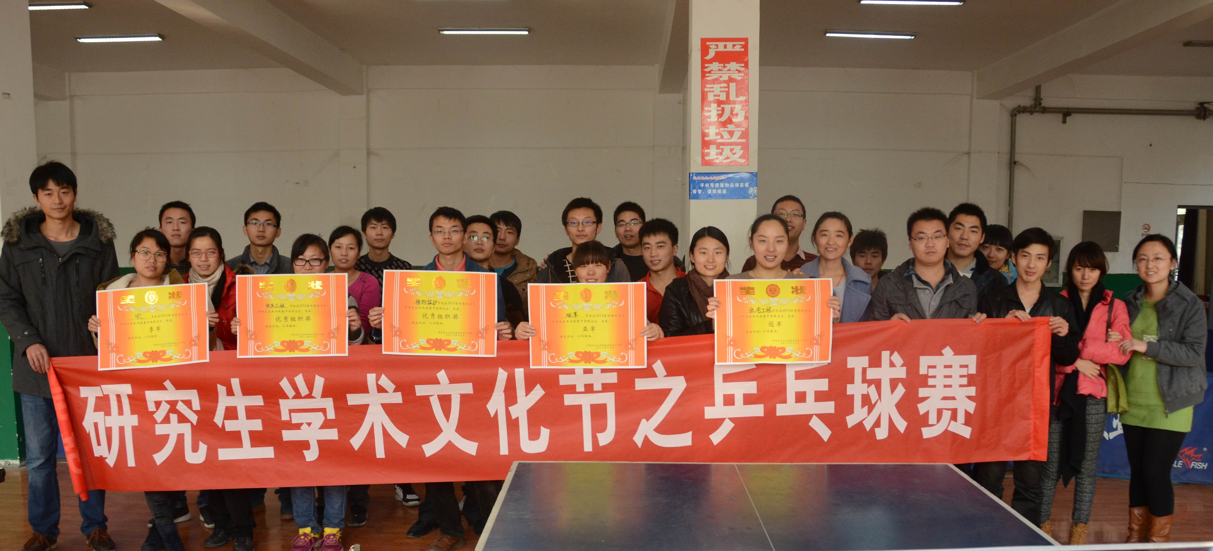 为丰富研究生课余生活、增强研究生身体素质,91社区 积极响应校研究生处学术文化节号召,成功与农学院联合承办了91社区 研究生乒乓球赛。