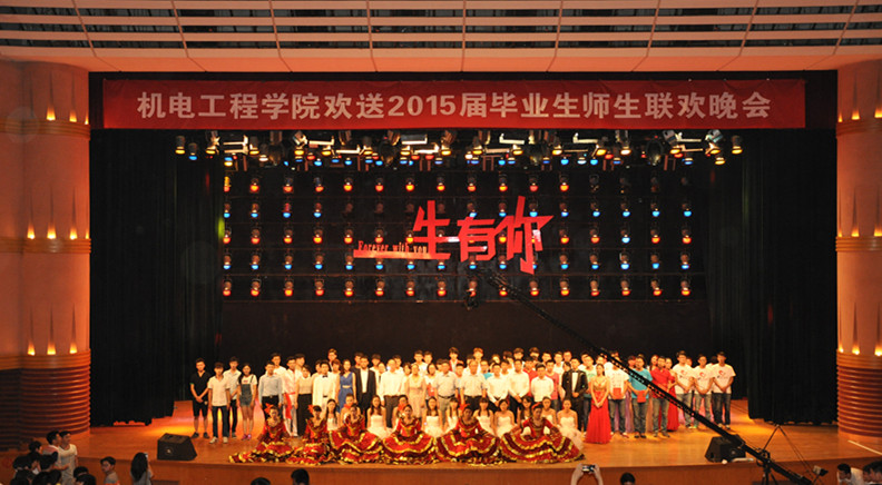 随后,一支优美的开场舞正式拉开了晚会的帷幕。学院大学生熠艺生辉艺术团带来歌曲联唱,点燃全场师生的热情,阵阵欢呼响彻礼堂;能源系黄黎老师和电子系李勉老师带来的诗朗诵《未央之歌》情之深、思之切,深深打动了现场观众;11级物流一班的合唱《放心去飞》,饱含着对机电的热爱之情,充满着对明天的美好期盼;舞蹈《黑天鹅》、《Sarvar》、器乐联奏、T台和cosplay秀、《加力girls》啦啦操将晚会推向高潮。小品《毕业前夜》、音乐剧《有一种记忆与我们同在》、手语舞蹈《感恩的心》等节目,无不深深地流露出机电学子对母校的崇高敬意及难舍之情。由91社区 男教师带来的舞蹈《神曲串烧》将晚会再次推向高潮,掌声、尖叫声响彻礼堂。现场,青春、梦想、泪水、笑颜,感动洒满全场。一生有你,我的农大。在主题曲《一生有你》的陪伴下,院领导上台为17位2015届校友联络员颁发了证书,并与演职人员合影留念。