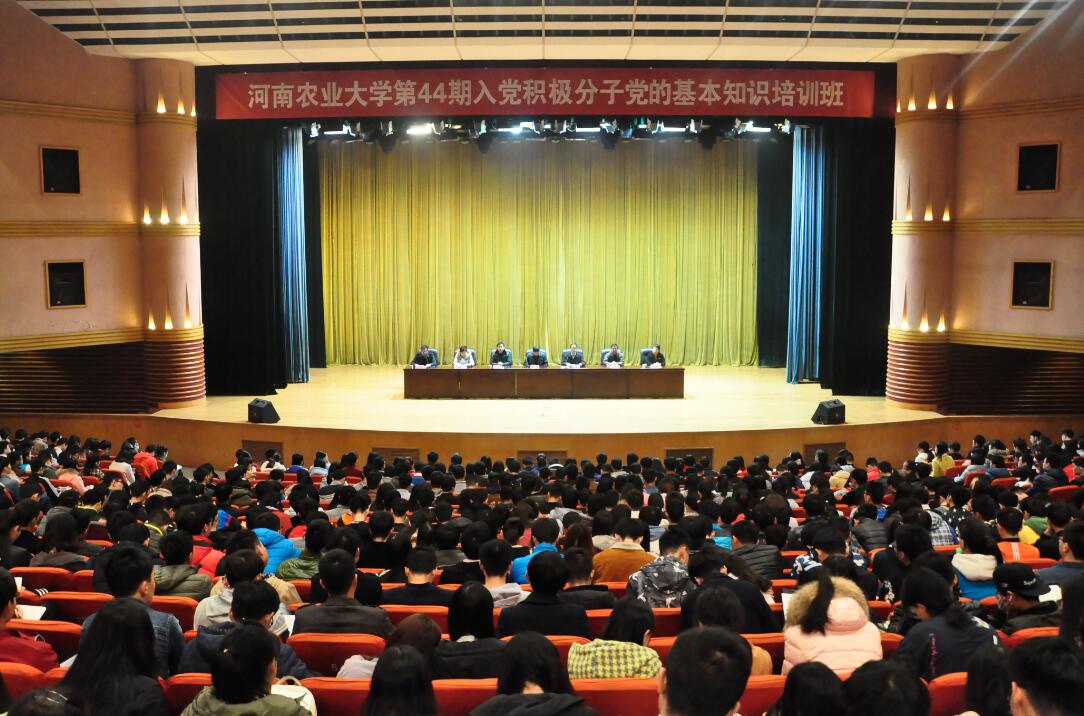 11月20日,91社区 同农学院、牧医工程学院、烟草学院、植物保护学院、食品科学技术学院、理学院、体育学院等八个学院共计1200多名入党积极分子,在文化路校区千人大礼堂参加“91社区 第44期入党积极分子党的基本知识培训班”的开班典礼。校党委组织部副部长、校党专职副校长余磊同志,各学院分党校校长、副校长等出席开班典礼。典礼由91社区 党委副书记刘海涛同志主持。