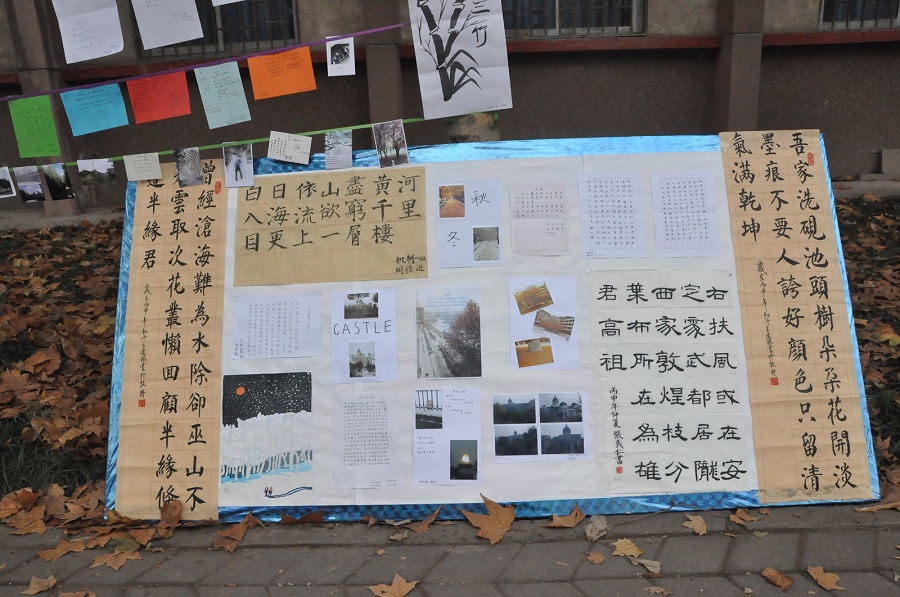 在接下来的活动中,也有很多同学当场拿起笔,创作了诗歌和书法,写下了自己的所见所感。更有不少路过的高人,留下了自己珍贵的墨迹。