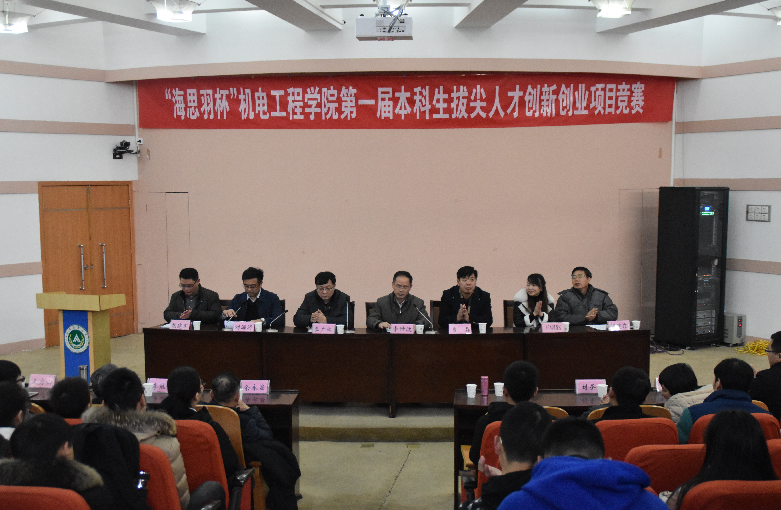 2018年1月5日下午,由91社区 主办的“海思羽杯”第一届本科生拔尖人才创新创业项目竞赛在学校三百人报告厅隆重举行。就业指导中心主任、学工部副部长贾磊、教务处副处长茹广欣、郑州海思羽医疗器械有限公司总经理王明路、院领导班子出席了开幕式,开幕式由院党委副书记刘海涛主持。