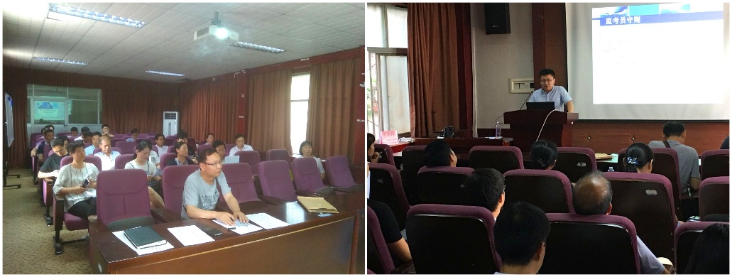 共有40余名老师赴许昌校区监考。培训会上,学院教学秘书兰明明从监考员职责、监考员操作规程、考场偶发事件处理办法、CET考试特别注意事项等几方面进行了详细讲解。