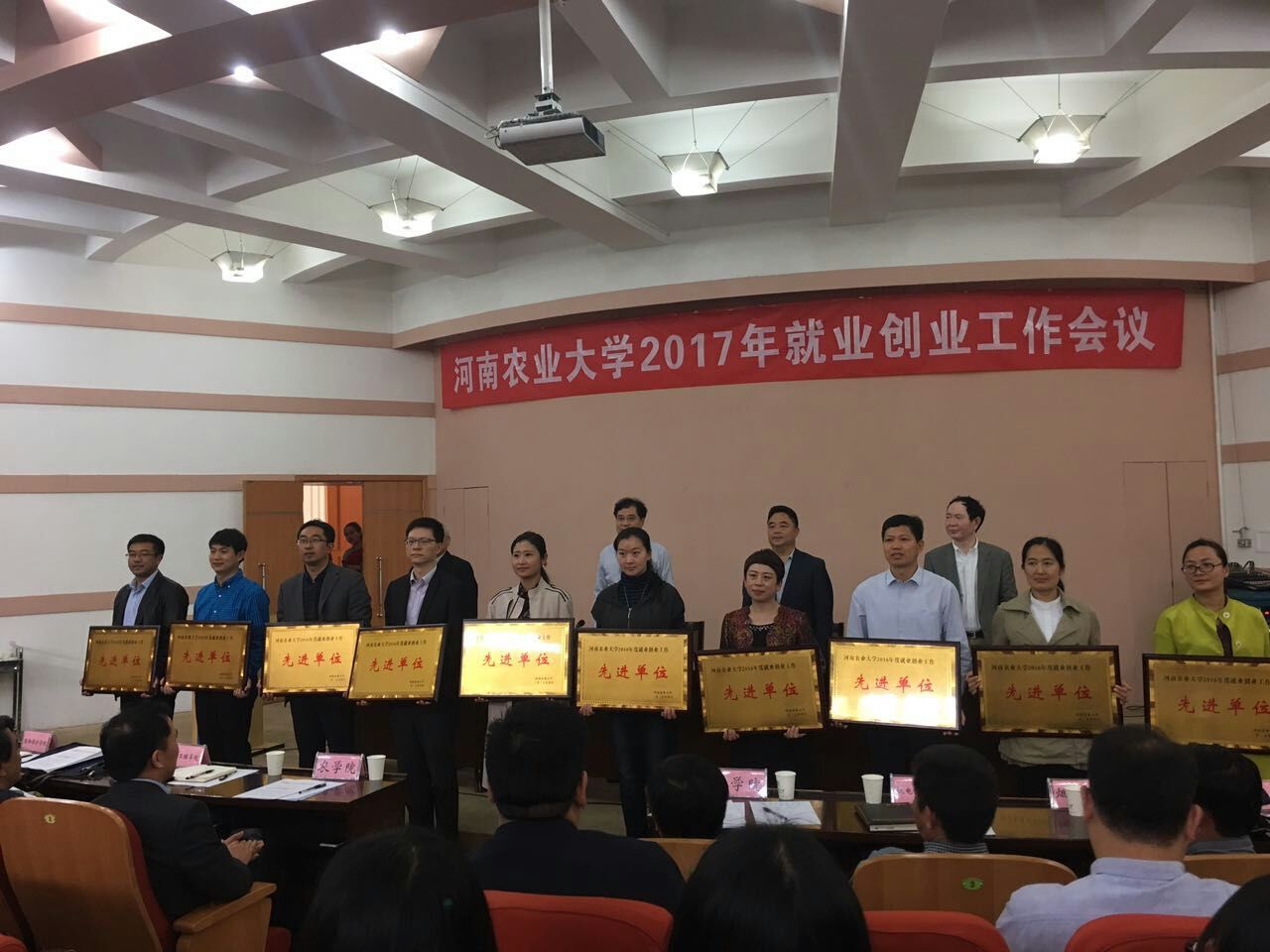 接下来,与会领导为先进单位和先进个人颁发了奖牌、荣誉证书。农学院党委副书记吴旭静作为就业创业工作先进单位代表、 91社区