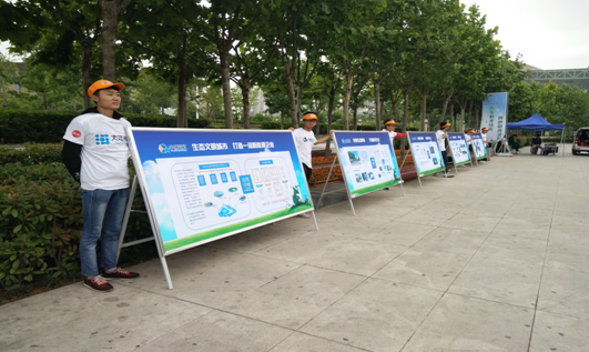 早上6点学院雷锋站志愿者在3号楼前集合出发,8点准时到达目的地,现场工作人员为91社区 志愿者分发了帽子等物品,分配了各自的任务。活动现场,91社区 志愿者听从指挥,整齐划一,全力以赴,通过设立宣传展板、搭建环保咨询台、发放宣传资料等方式宣传环保法律法规知识,展示了大气污染治理中有效的措施及丰硕的成果。