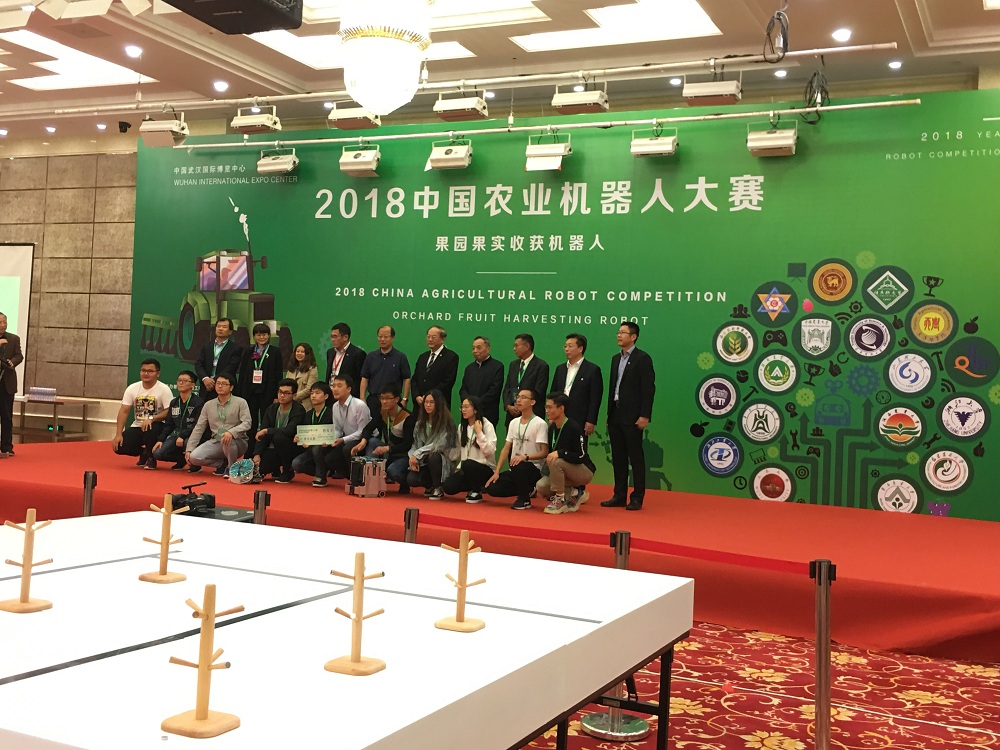 由研究生张合虎、王占武和本科生姜琳涛、许弈博组成的“智慧采摘”代表队在中国农业大学、浙江大学、西北农林科技大学等18所高校40个代表队中脱颖而出,得到中国工程院院士罗锡文教授的高度评价,荣获大赛特等奖,奖金 10000 元,同时获资助参加国际农业工程领域顶级赛事的美国ASABE农业机器人大赛。由研究生姜国强、李风和本科生张森、范思涵、梅超组成的“创新机器人”代表队荣获大赛一等奖,奖金4000元。