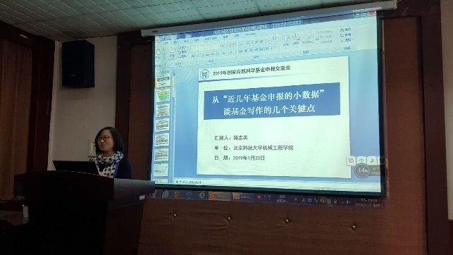 邀请北京科技大学郜志英副教授做了题为“从近几年基金申报的 ‘小数据’谈基金写作‘’的几个关键点“的辅导报告。报告会由副院长胡建军主持,相关专业教师参加了报告会。
