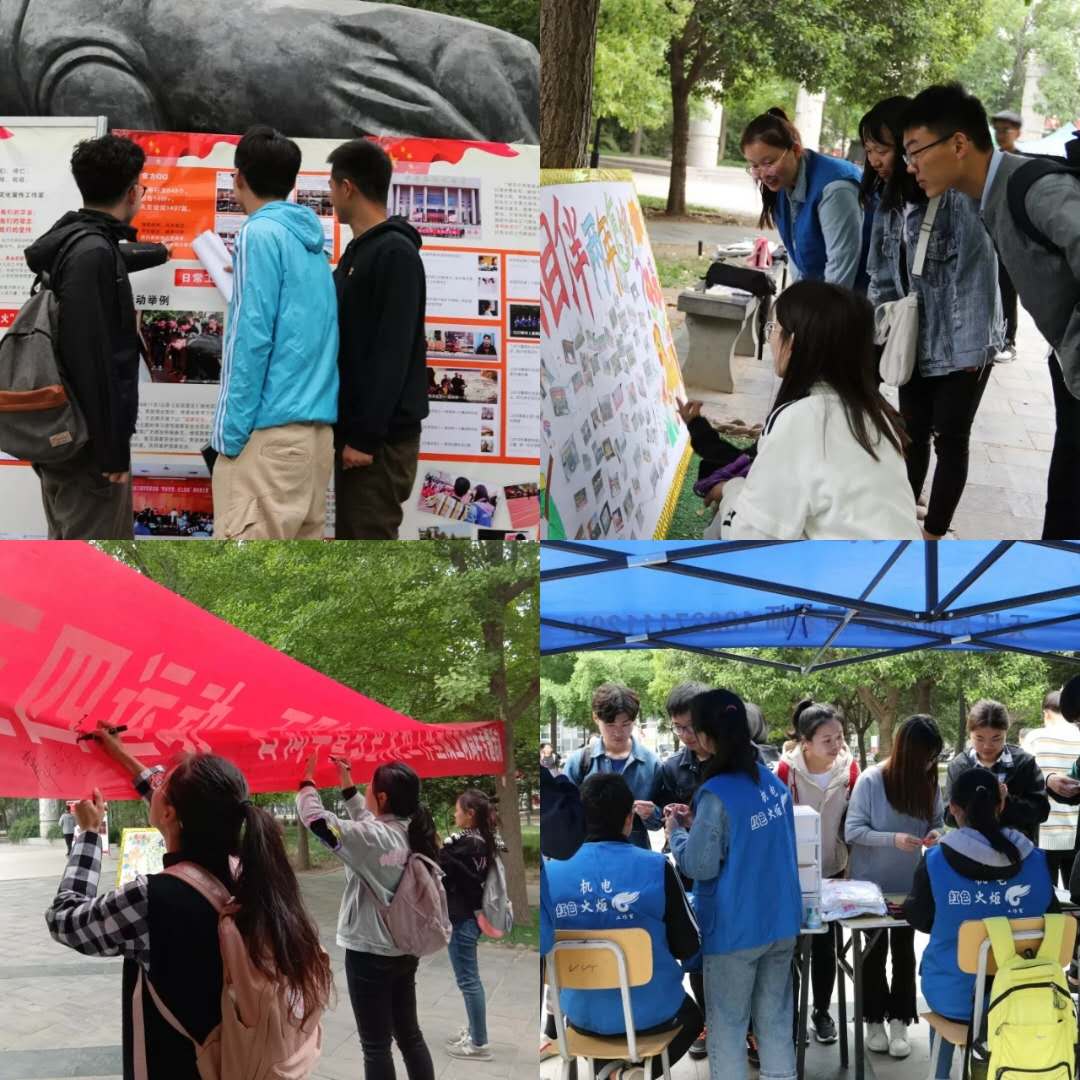 此次活动于4月25日至4月26日在牧医广场举办,通过展板等形式详细介绍了五四运动的背景、内容等相关内容,让同学们重温五四,缅怀五四先驱崇高的爱国情怀和革命精神。此外,红色火炬成员们通过展示成立以来举办的部分活动与优秀作品照片,汇报工作成绩与成效。活动现场同学们参与答题竞赛、横幅上签名等多种互动环节学习五四运动相关知识。同学们通过“与你相伴两年怎够”、“小火,我想对你说”展板上手写寄语和歌声传达了对工作室成立两年来想说的话,一言一语都表达出了同学们对工作室的由衷的喜爱、支持和祝福。