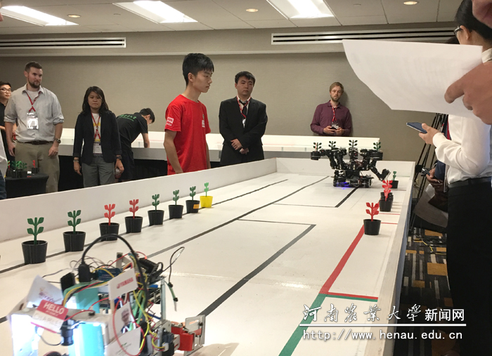 ASABE国际大学生机器人设计竞赛是国际农业工程学科领域影响力最强、学术水平最高的机器人技术创新大赛,已连续举办了14届。本届ASABE国际大学生机器人设计竞赛在美国马萨诸塞州波士顿市举行,竞赛目标是设计一个模拟搬运花盆并运送到花盆仓储区的全自动机器人系统,完成目标物的成熟度判别、定位、获取、收集、转运等一系列任务。经过遴选,本次竞赛共有来自加拿大的麦吉尔大学(McGill University),美国的康奈尔大学(Cornell University)、加州大学戴维斯分校(University of California – Davis),中国浙江大学、中国农业大学等高校的高水平队伍参加。91社区