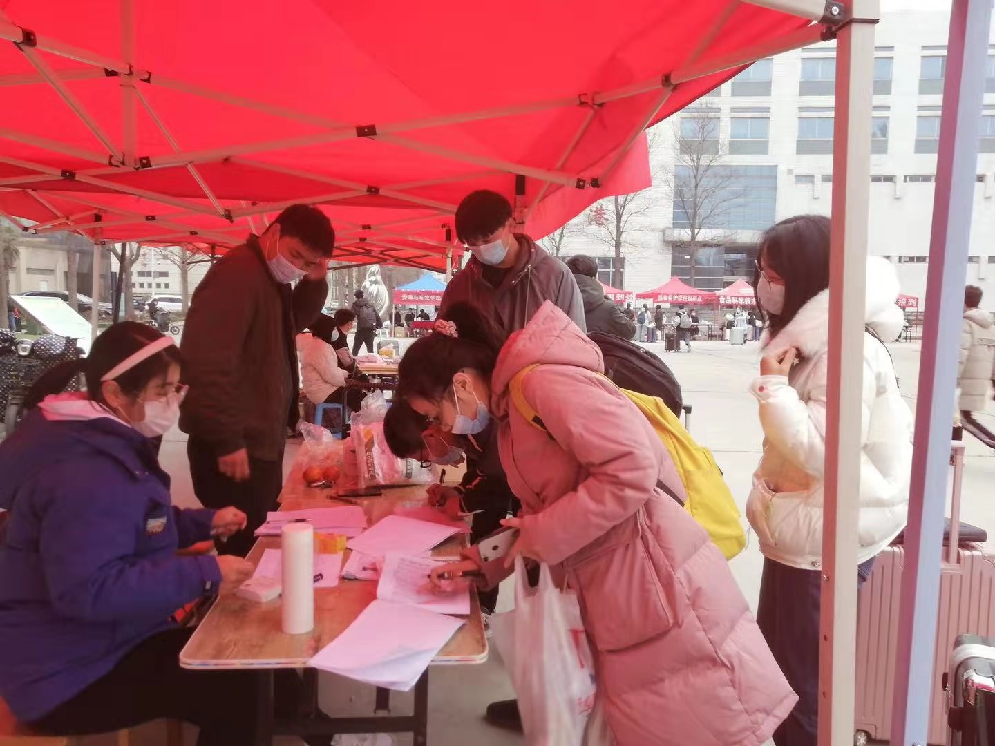 特设文化路校区、二区学生公寓、桃李园学生公寓三个报到点,并安排大批志愿者协助学生返校工作,最大程度地为学子们返校提供了便利。