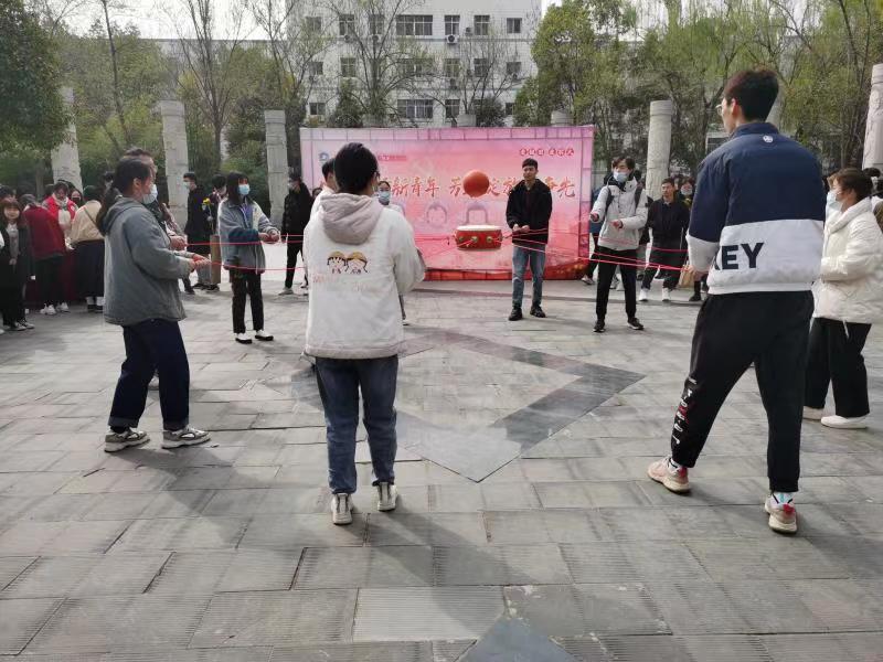 活动现场分为百年辉煌擂鼓扬、建党史诗心中刻、红歌礼赞心向党、礼赞我党新祝愿、巾帼映像熠熠辉五大部分,擂鼓扬帆环节,二十余支队伍,男女配合十人一组,合力击鼓,以击鼓接球次数为最终得分,看似简单的擂鼓,其则需要男女同学协力完成,团结配合、众人一心的团队精神在这里得到完美的体现。党史问答板块前,同学们有序排队,上至五四运动、新民主主义革命,下至改革开放、脱贫攻坚战等问题覆盖层面之广,使同学们绞尽脑汁、冥思苦想,通过主持人的引导,同学们豁然开朗,脱口而出正确答案,而束束代表朝气蓬勃的向日葵、象征关爱照顾的玫瑰......也递到同学们的手中。红歌猜名环节,通过播放红歌片段,由同学们积极抢答,现场气氛火热,很多歌曲虽年代久远,但依旧朗朗上口、撼人心弦,同学们似乎已忘记比赛,跟随着节拍,伴随着音乐,俨然转化为一场合唱。