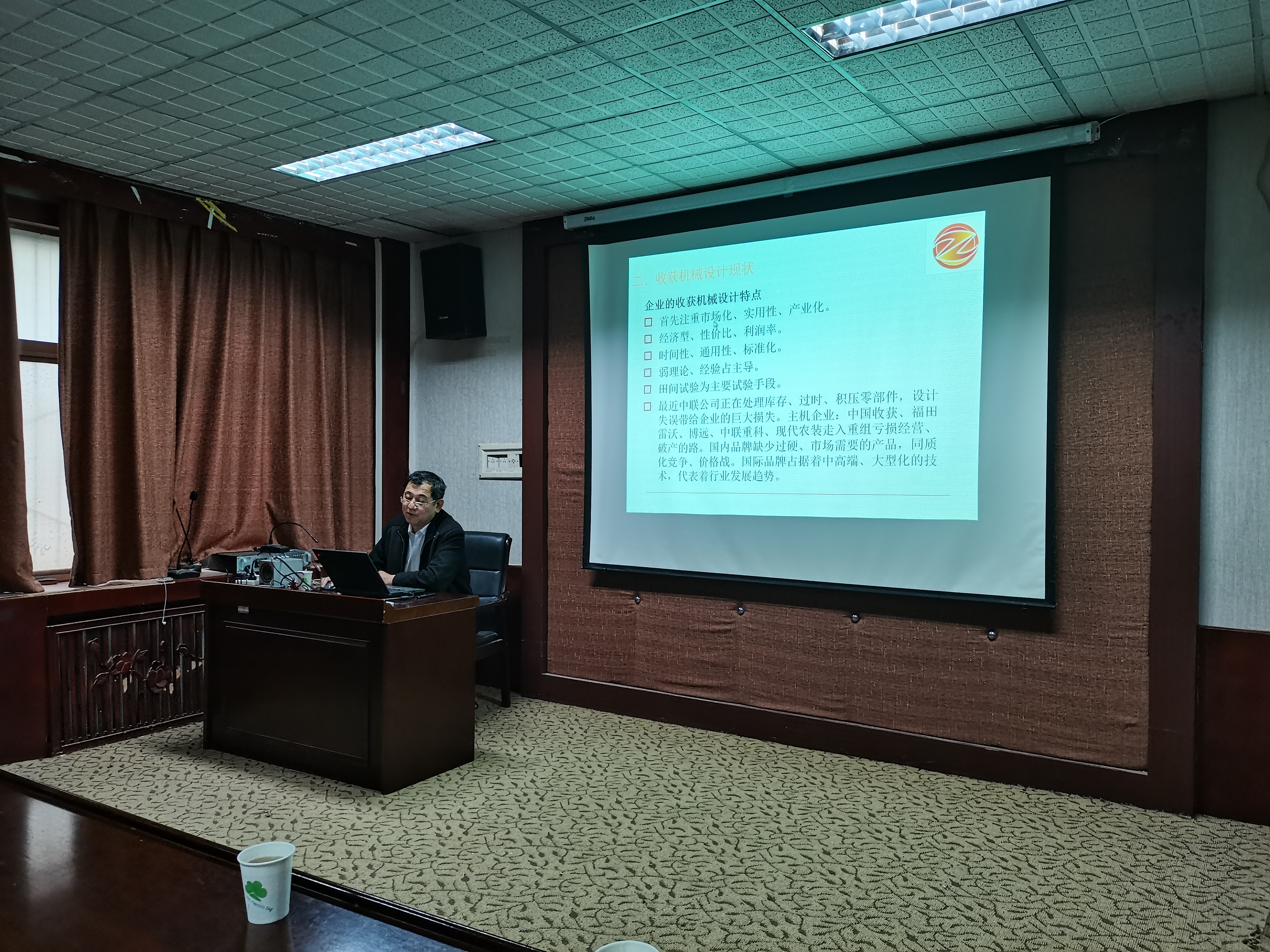 学生培养表示了高度的认可。他表示,多年来我校与郑州中联收获机械有限公司构建了良好的合作与交流关系,形成了教学与实践相结合的教学模式,并输送了大量的优秀人才。然后,解文东讲解乐小麦联合收获机、花生捡拾收获机和玉米摘穗收获机等机械装备与技术的发展现状,并以郑州中联收获机械有限公司研发的小麦联合收获机、自走式花生捡拾收获机为例,重点讲解了收获机的割台、输送装置、脱粒装置、清选装置、降尘装置等关键机构的结构设计特点和技术原理。报告会,气氛热烈,创新班同学和研究生争相提问,解文东还亲切回答了在场同学对于收获机械装备与技术的一些问题,并表达了对91社区
