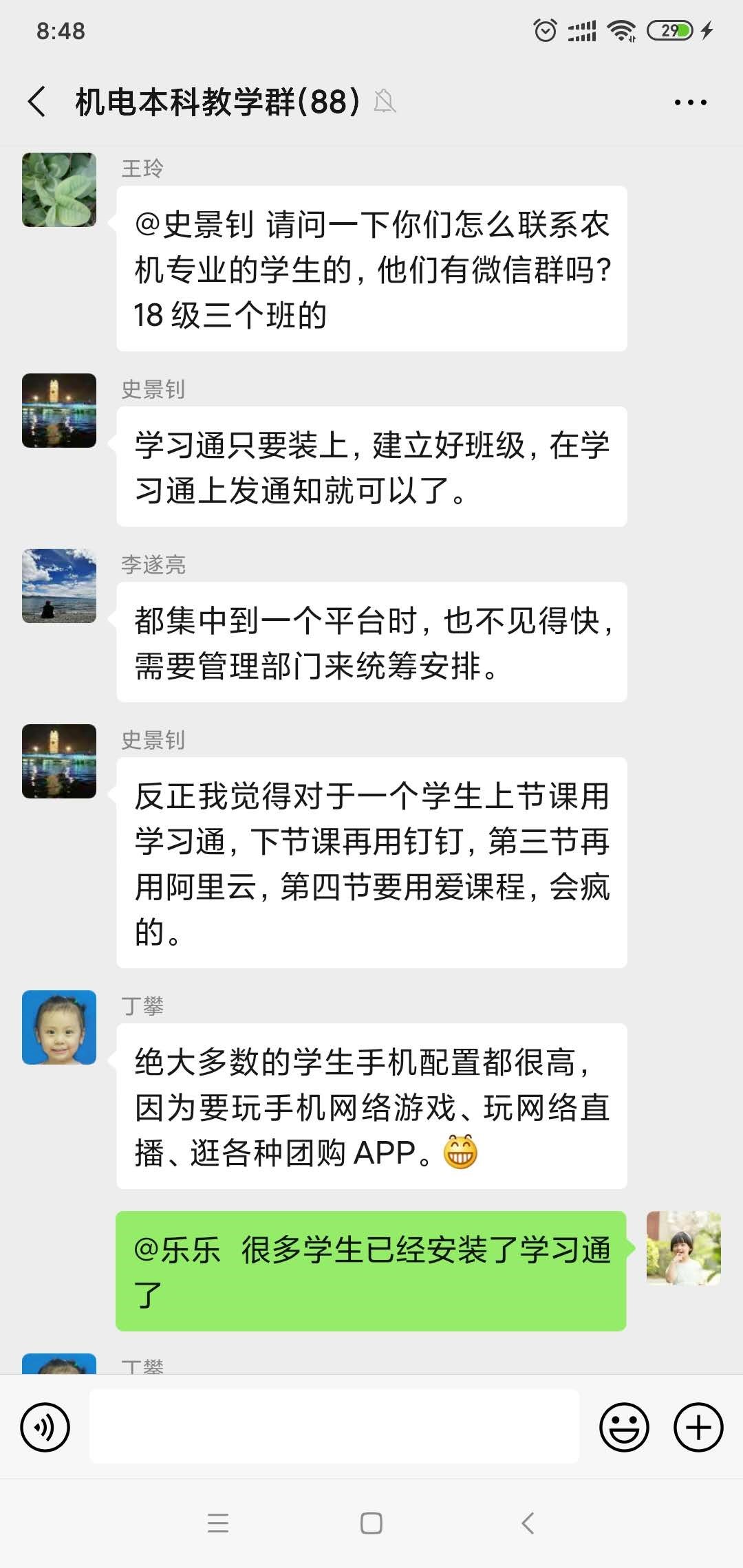 六、前期老师们利用教学群相互交流: