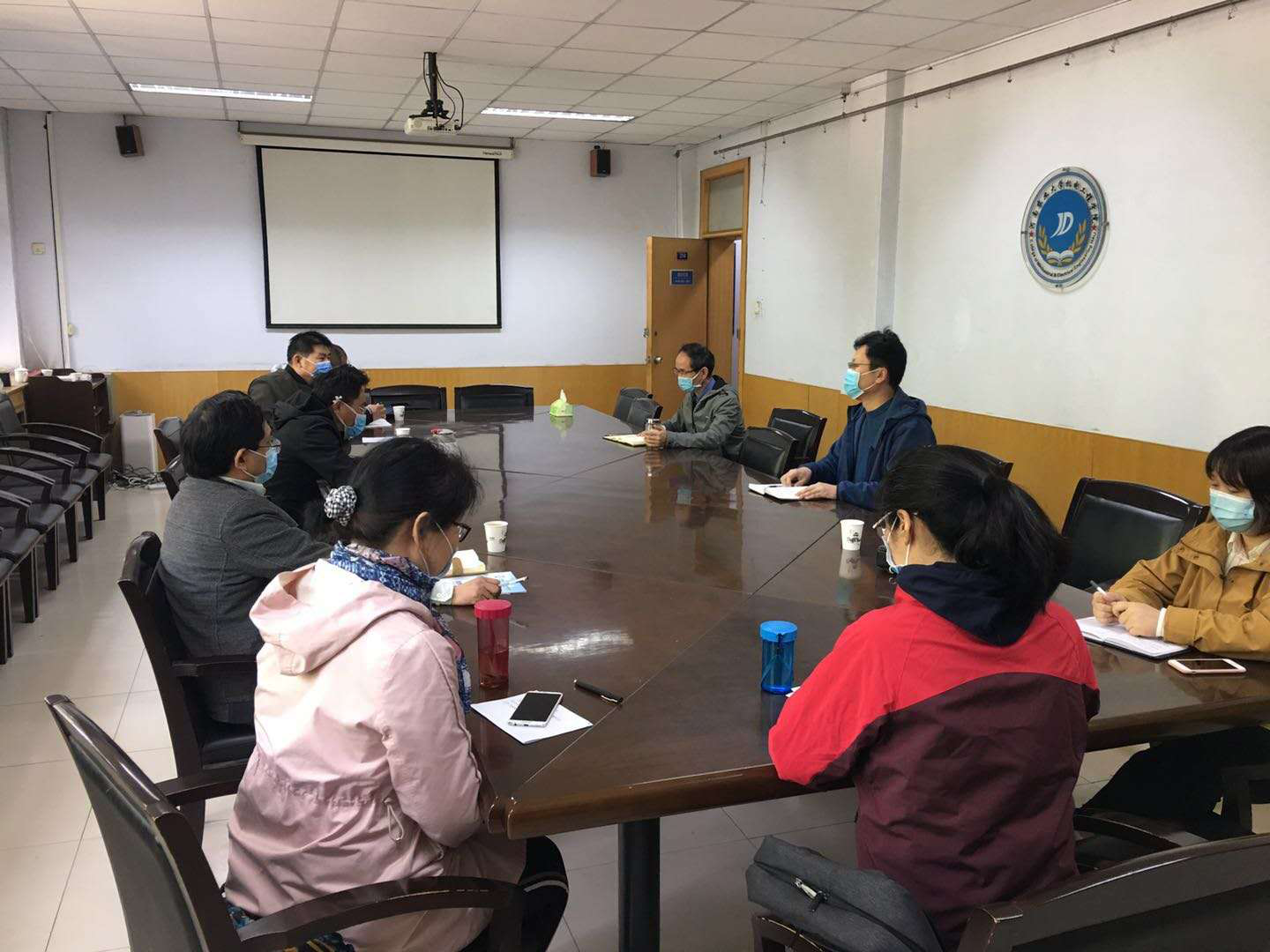 机械工程系教工党支部在院会议室召开全体党员大会,根据国家疫情防控需要,研讨熔喷机生产线的技术可行性。院党委书记李世欣和支部党员、教师参加会议。