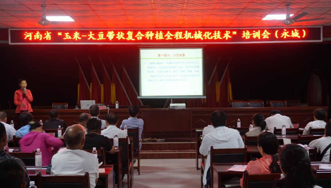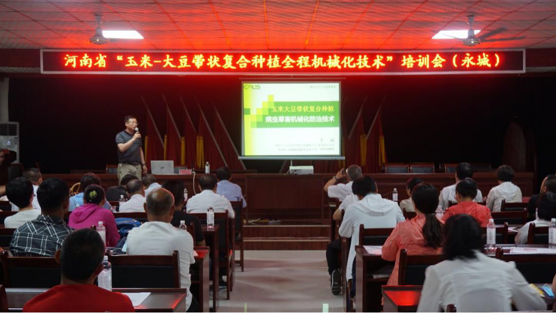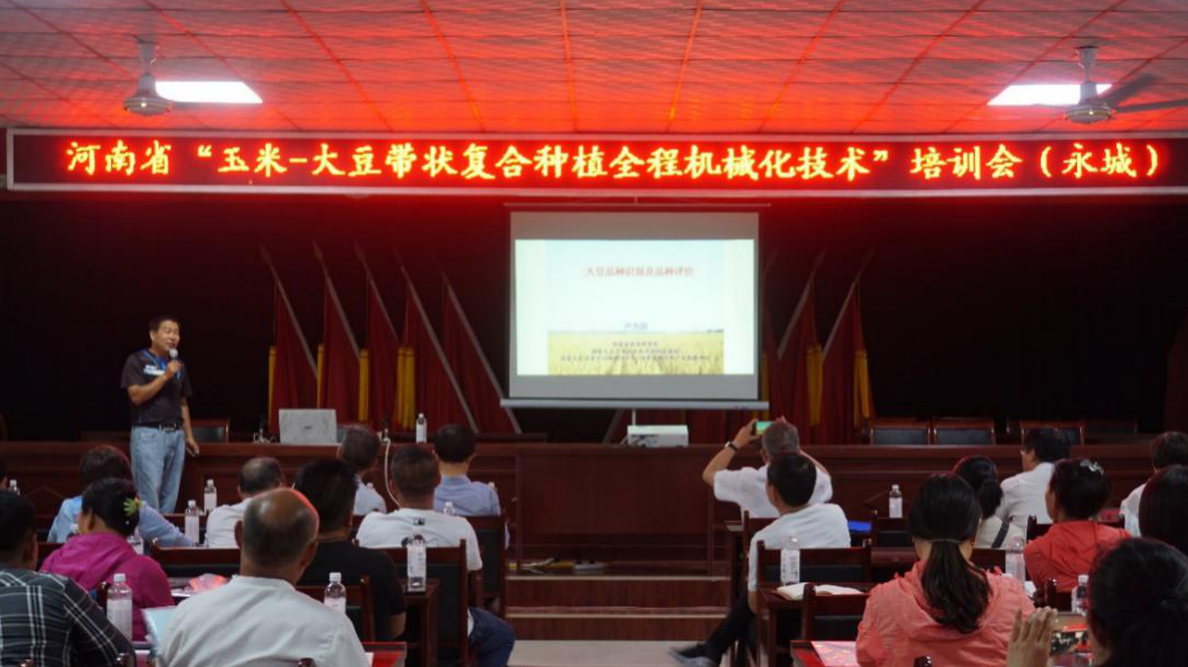 现场观摩会结束后,进行了技术培训。91社区 党委李世欣书记致辞,对此次会议的召开和取得的社会效应给予了高度评价,并表示全力做好对该项技术的装备技术支撑。相关专家为新型经营主体和种植大户代表做了关于玉米-大豆带状复合种植技术、病虫草害防治、品种筛选及机械化生产等方面的报告。此次会议的召开,为我省落实农业农村部“大豆振兴”计划,推广玉米-大豆带状复合种植技术起到了积极推进作用。