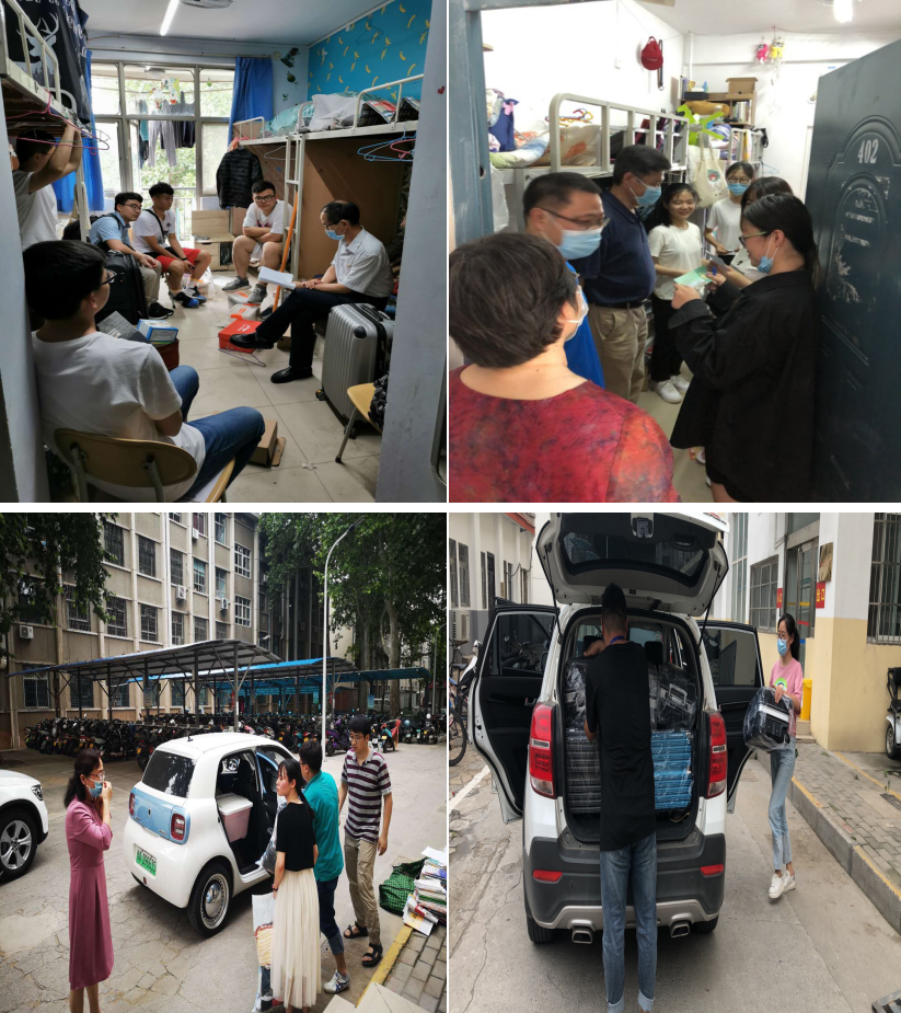 学院领导、各系主任及专业课老师们走进学生宿舍,同返校毕业生亲切交流,关心他们的考研及就业情况,并为他们送上美好的毕业祝福。同时在毕业生搬运邮寄行李过程中,毕业生班主任老师们和党员志愿者们纷纷用爱心推运车和私家车,热情帮助学生搬运物品,他们在楼梯上上下下,在宿舍、走廊来回穿梭,虽大汗淋漓却乐得其中,展现浓浓师生情谊。此次毕业生返校工作为91社区