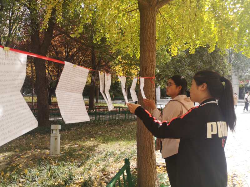 官方微信公众号开设“英雄不朽,薪火相传”专栏,推送“抗美援朝战争中最可爱的人”系列文章五期,通过讲述黄继光、杨根思、邱少云、杨连第等多名抗美援朝战争中人民英雄的感人事迹,在全院范围内营造致敬英雄,争做时代新人的浓厚氛围。11月3日-5日,在工程楼前广场,通过英雄事迹宣传展板、优秀红色征文作品展示、红歌歌唱、故事诵读、留言板留言等多种形式,展示英雄们的个人事迹、生平发展及为捍卫祖国和平所作出的牺牲与贡献,更加唤起了广大师生对那段浴血奋战抗争史的追忆,对牺牲烈士的缅怀与致敬。红色征文作品及留言板中一字一句,抒写着同学们对先辈英雄的追念,对革命精神的传承。本次活动形式多样,内容丰富,进一步增强了全院师生的爱国信仰与使命担当。