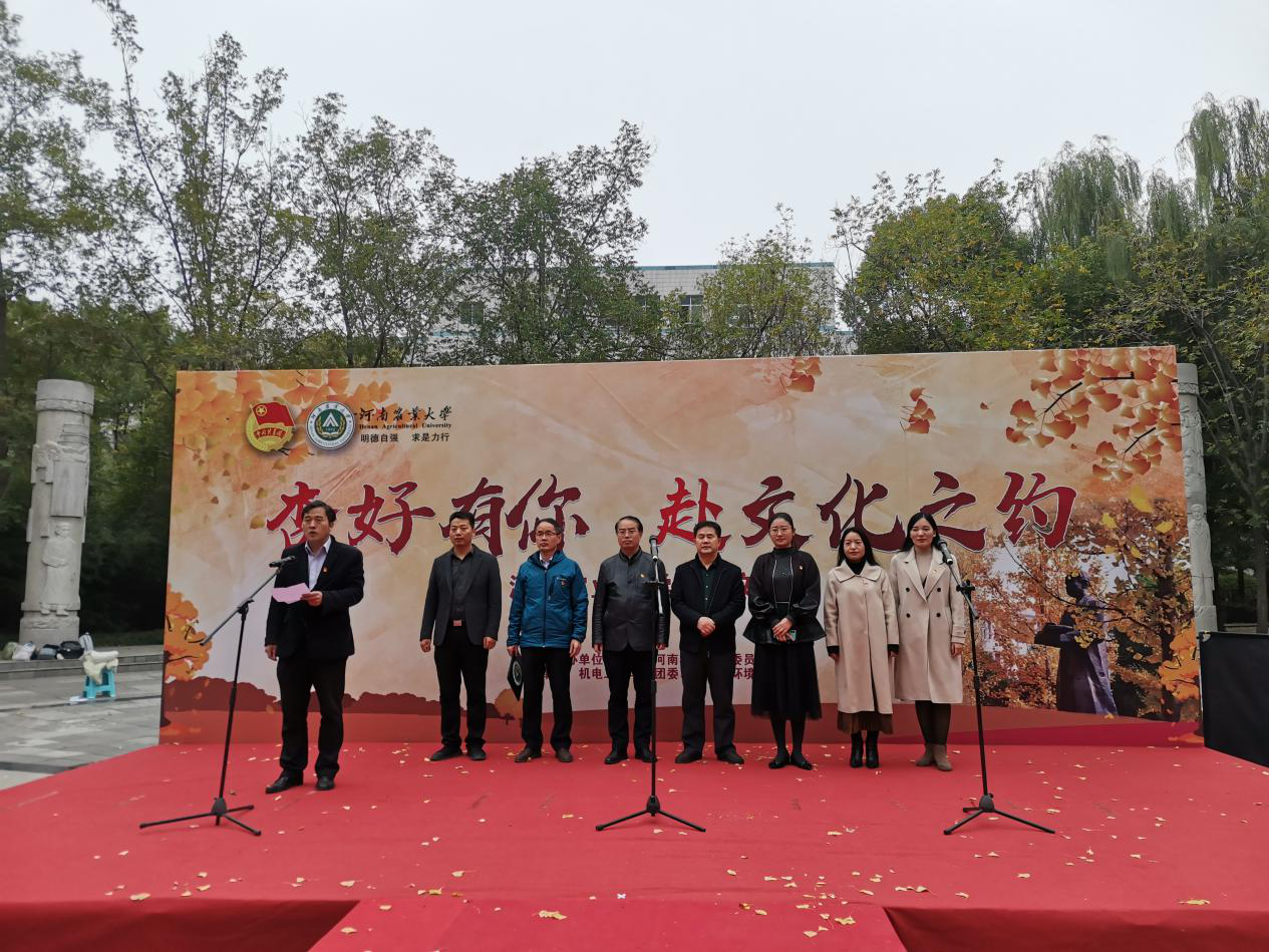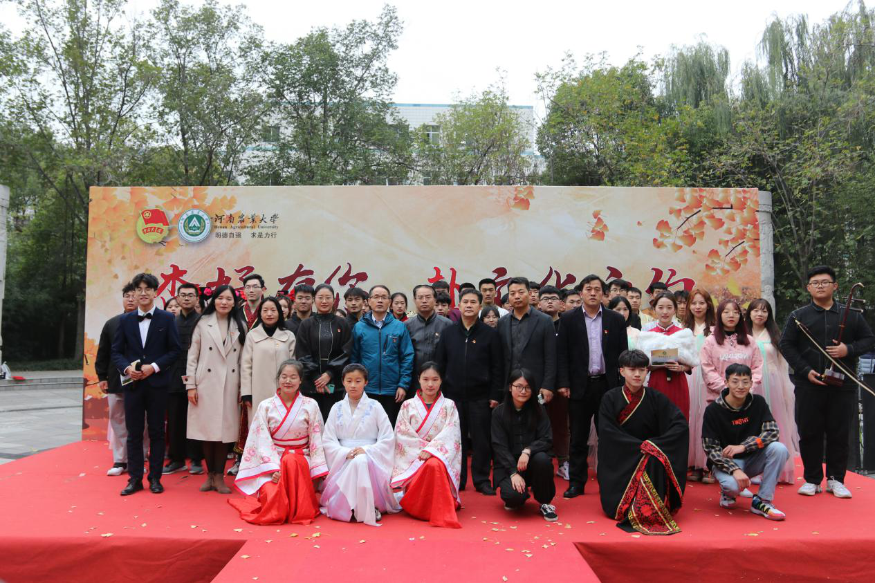 团委、资源与环境学院团委承办的“杏好有你,赴文化之约”银杏文化节活动在文化路校区工程楼南广场拉开帷幕。校研究生工作部部长张红阳、校团委书记魏玮、宣传部副部长周红飞、学生工作部副部长王玲、91社区