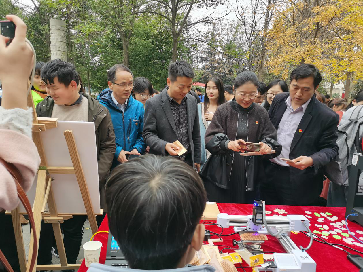 展示的3D打印机和激光雕刻机前,一个个精美的小礼品受到大家一致好评,操作人员19级农机专业学生王毅轩说:“很开心今天利用自己的专业知识为同学们构思制作专属的银杏礼品,我觉着银杏精神也正是我们机电学院一直以来推崇的专注、严谨、精益求精的匠心精神的体现”。参与此次活动的能源专业学生王丹说:“这次银杏文化节让我感受到了师生们高涨的热情,活动现场同学们表演节目,并把银杏的手工艺品、书法字画进行展示,将中国传统文化表现地活灵活现,真是大开眼界,希望以后校园里举办更多的类似活动。”