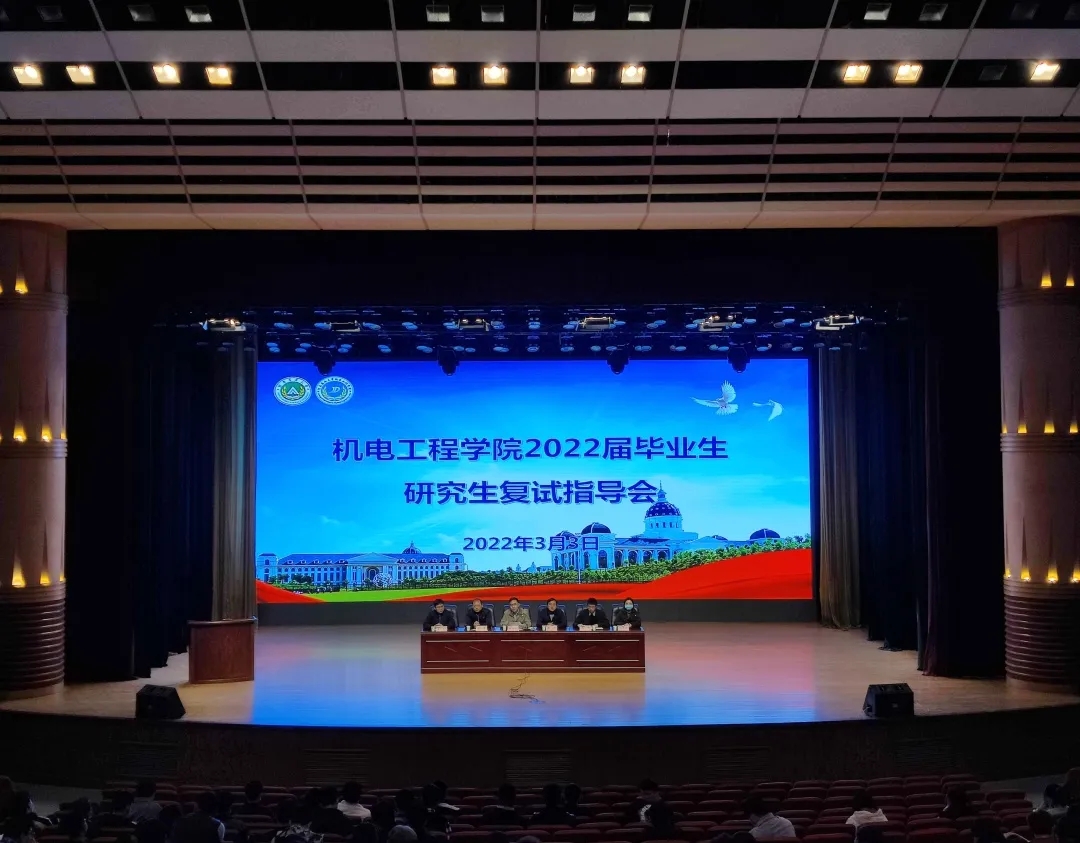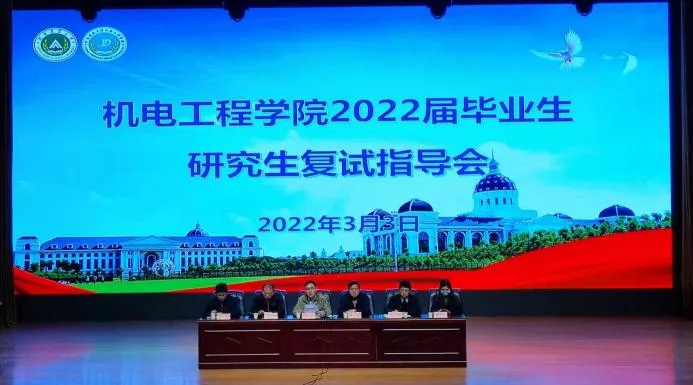 于文化路校区千人大礼堂召开2022届毕业生研究生复试指导会。研究生院副院长郝四平、院党委副书记赵宁、机械工程系主任丁攀、交通工程系副主任王恒、团委书记黄笑、年级辅导员胡亭亭出席会议,部分毕业生参加会议,会议由赵宁主持。