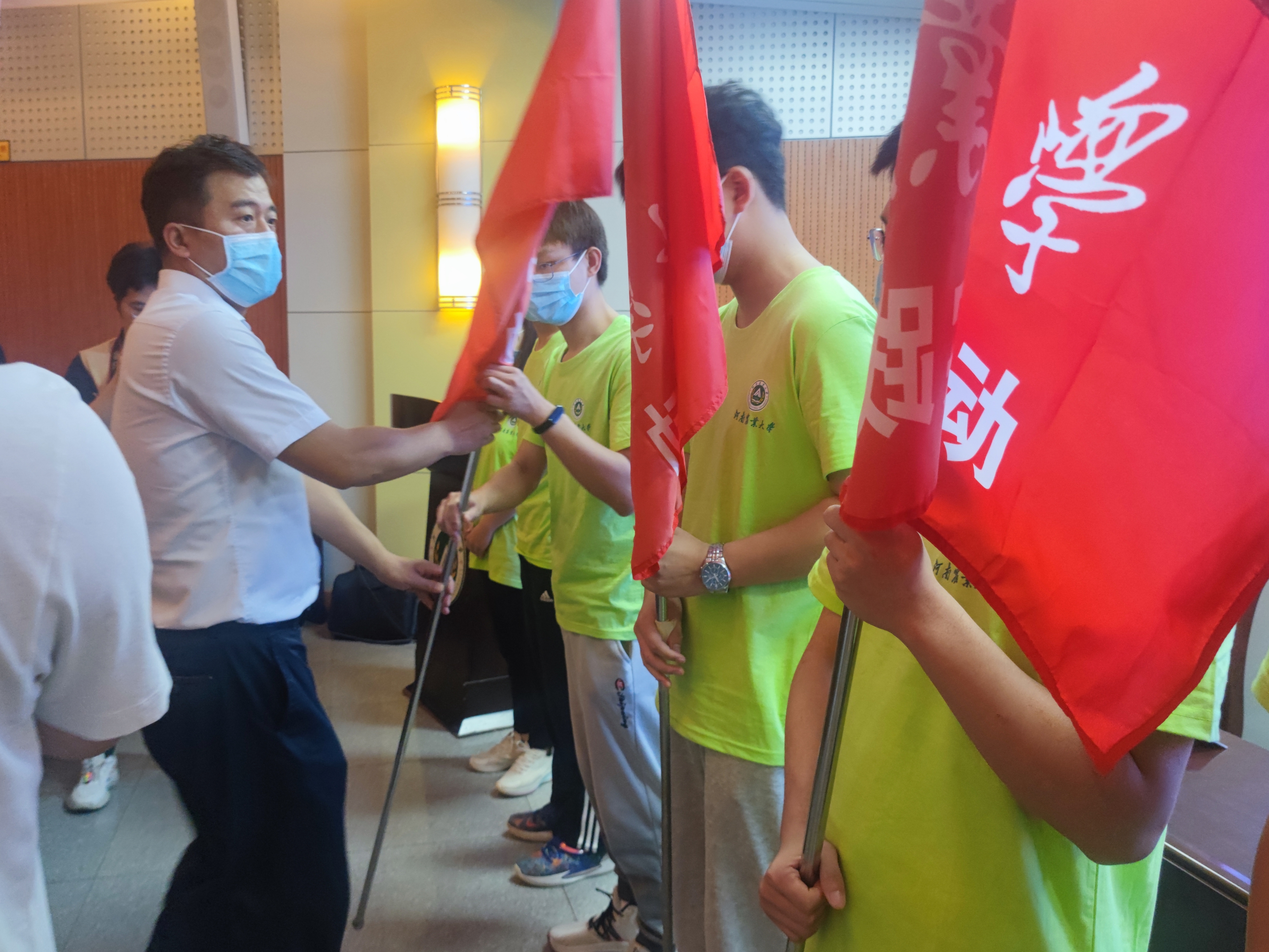 会议最后,赵宁为91社区 社会实践团队代表授旗并合影留念。他表示,大学生是祖国未来建设的主力军,大学生的思想引领着整个社会思潮,暑期社会实践既是大学生接触社会、服务社会、了解社会的重要过程,也是课堂教育的有效补充和延伸,希望各团队成员能够珍惜此次实践机会,躬身实践、深入基层,为实现中华民族伟大复兴贡献青春力量!