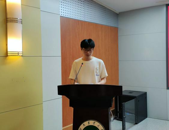 第四期青马班优秀学员代表王毅轩发言。他首先对学院老师的关怀、青马班学员的配合表达感谢,随后向与会人员分享了三点收获。他表示,在青马班学习的日子里,更加坚定了对共产主义的信仰、更加注重理论与实践的结合、更加珍惜来之不易的同学情谊,表明今后将继续牢记习近平总书记提出的嘱托,向先进同志学习,努力发展自我,矢志不渝地成为一名有思考、有灼见、有锋芒的青马人。