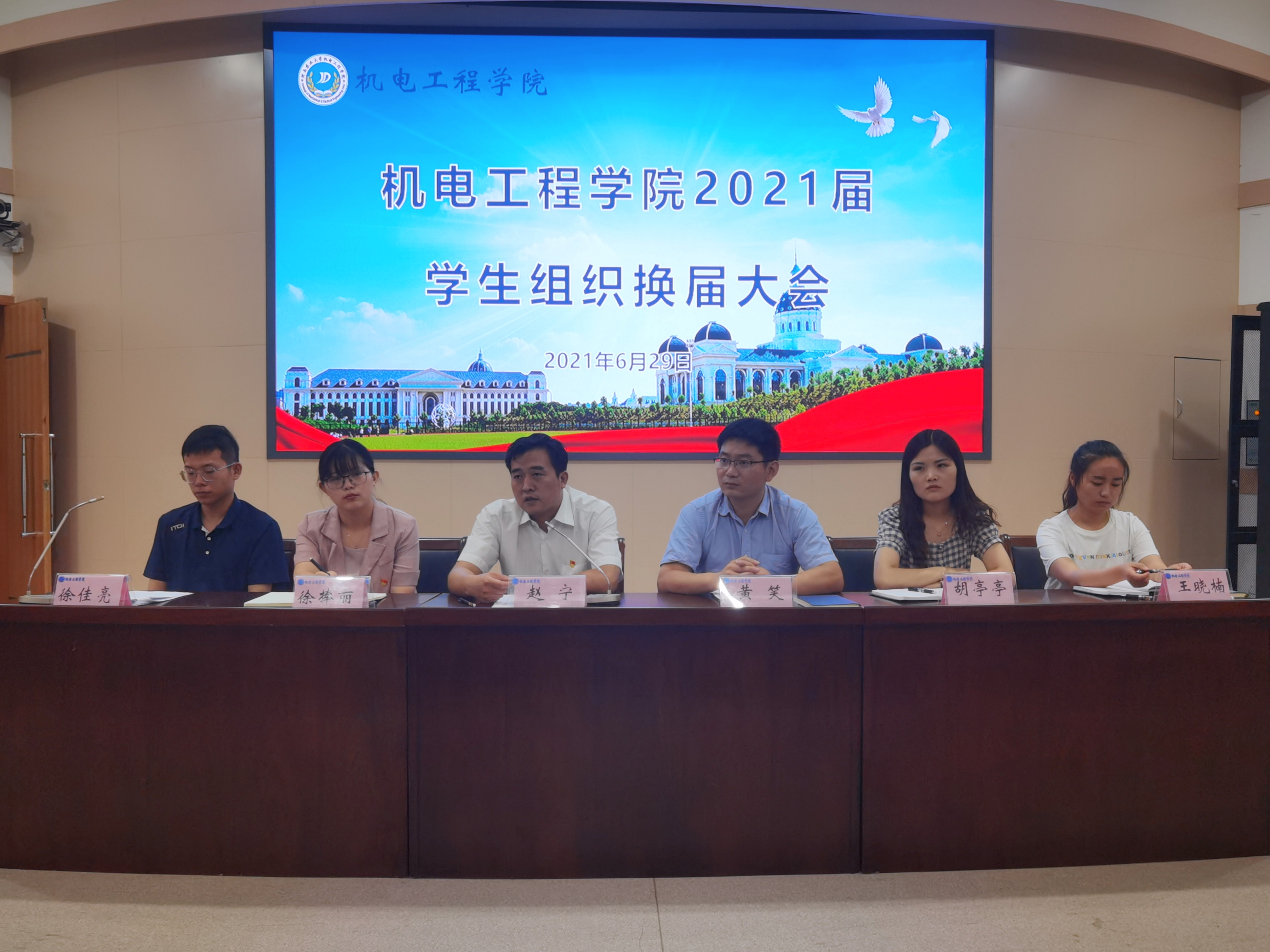 社会实践启动仪式暨学生组织换届大会。院党委副书记赵宁,团委书记黄笑,团委副书记徐捧丽,辅导员胡亭亭、王晓楠、徐佳亮出席本次会议。91社区
