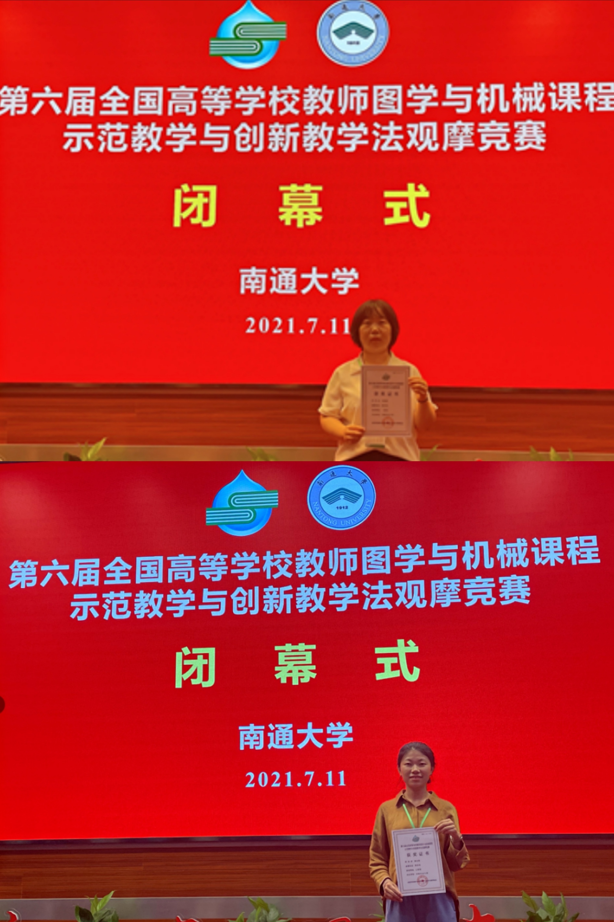 近日,第六届全国高等学校教师图学与机械课程示范教学与创新教学法观摩竞赛在南通大学举行,91社区 青年教师首次参赛。在课程负责人田辉老师的指导下,机械工程系的2名青年教师精心准备,顺利完成竞赛,其中刘晓潺老师获得图学类一等奖,黄会男老师获得图学类三等奖,其扎实的教学基本功、丰富的教学内容、线上线下混合式的教学方法、与专业课相互融合的课程思政设计,赢得了专家评委的充分肯定,充分展现了我校工科教师的风采,为学校赢得了荣誉。
