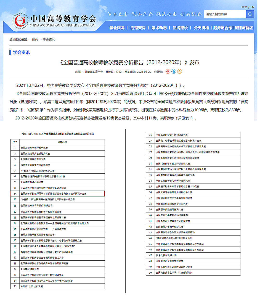 2021年3月22日,中国高等教育学会发布了“全国高校教师教学竞赛状态数据(2012-2020)”,将我国当前普遍得到社会认可、有公开数据的50项全国性教师教学竞赛作为研究对象进行统计,该项竞赛每两年举办一届,已经被纳入了教师教学竞赛状态数据统计的项目。
