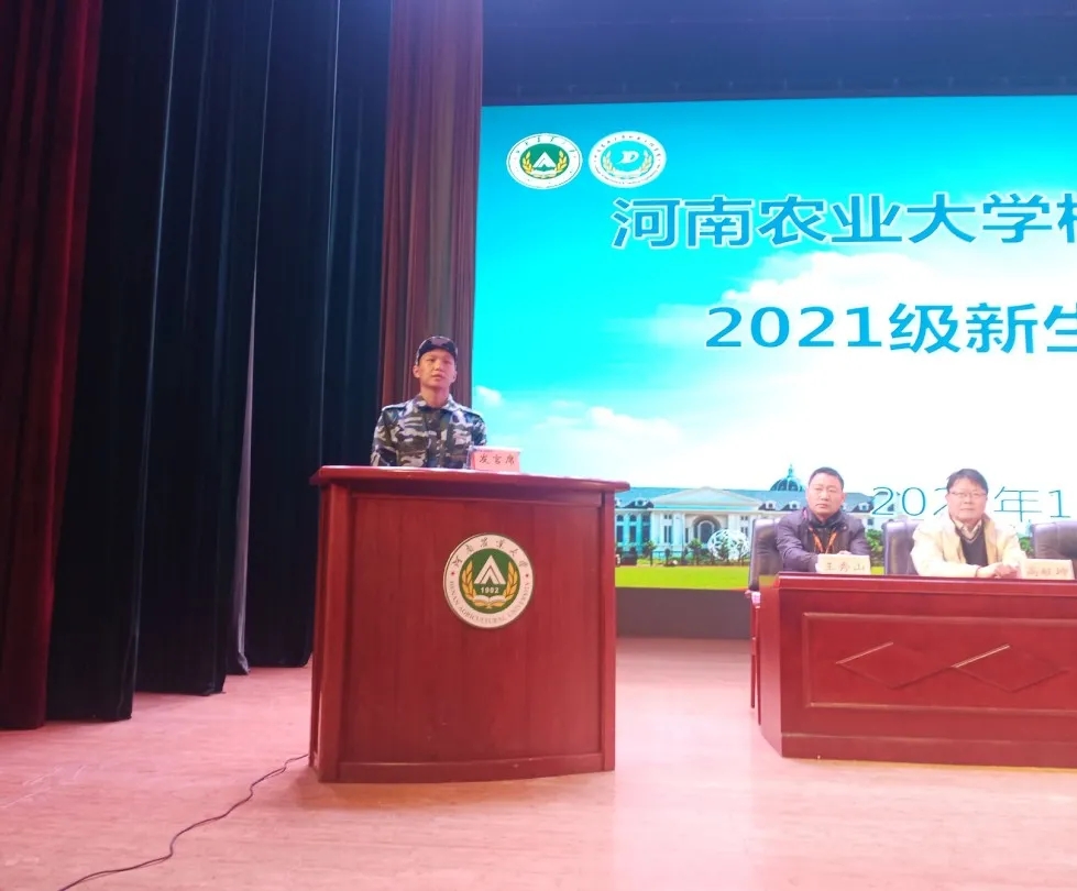 之后,2018级电信二班冯祉睿发言。他从自身经历讲起,分享了大学四年里的收获与成长。勉励学弟学妹们珍惜宝贵光阴、做好时间规划、制定可行计划、培养综合能力,并希望学弟学妹们努力成长为一名有理想、有责任、有担当的青年。2021级交通一班时福祥作为新生代表发言。他在发言中表达了在农大扬帆起航的喜悦之情,并表明会牢记责任使命、全面提升自我、不负青春时光,充分展现了新时代青年不断追求进步、努力拼搏奋斗的决心与信心。