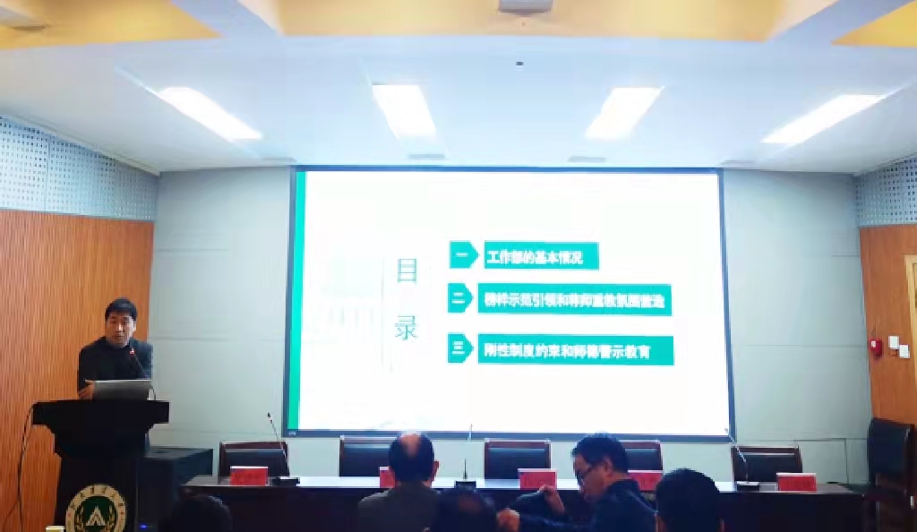 王金铎以全国优秀教师复旦大学教授钟扬的感人事迹为引,为91社区 导师做了题为“落实立德树人根本任务 争做新时代“四有”好教师”的报告。宣传全国首批教育世家武大黄健教授家庭、我省首批教育世家我校雷萌萌老师家庭等示范榜样的同时,也为导师们解读了我校系列师德约束和警示文件。