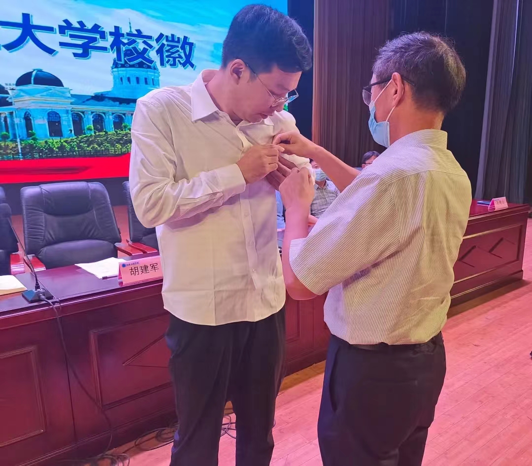 2022级新生代表佩戴校徽。
