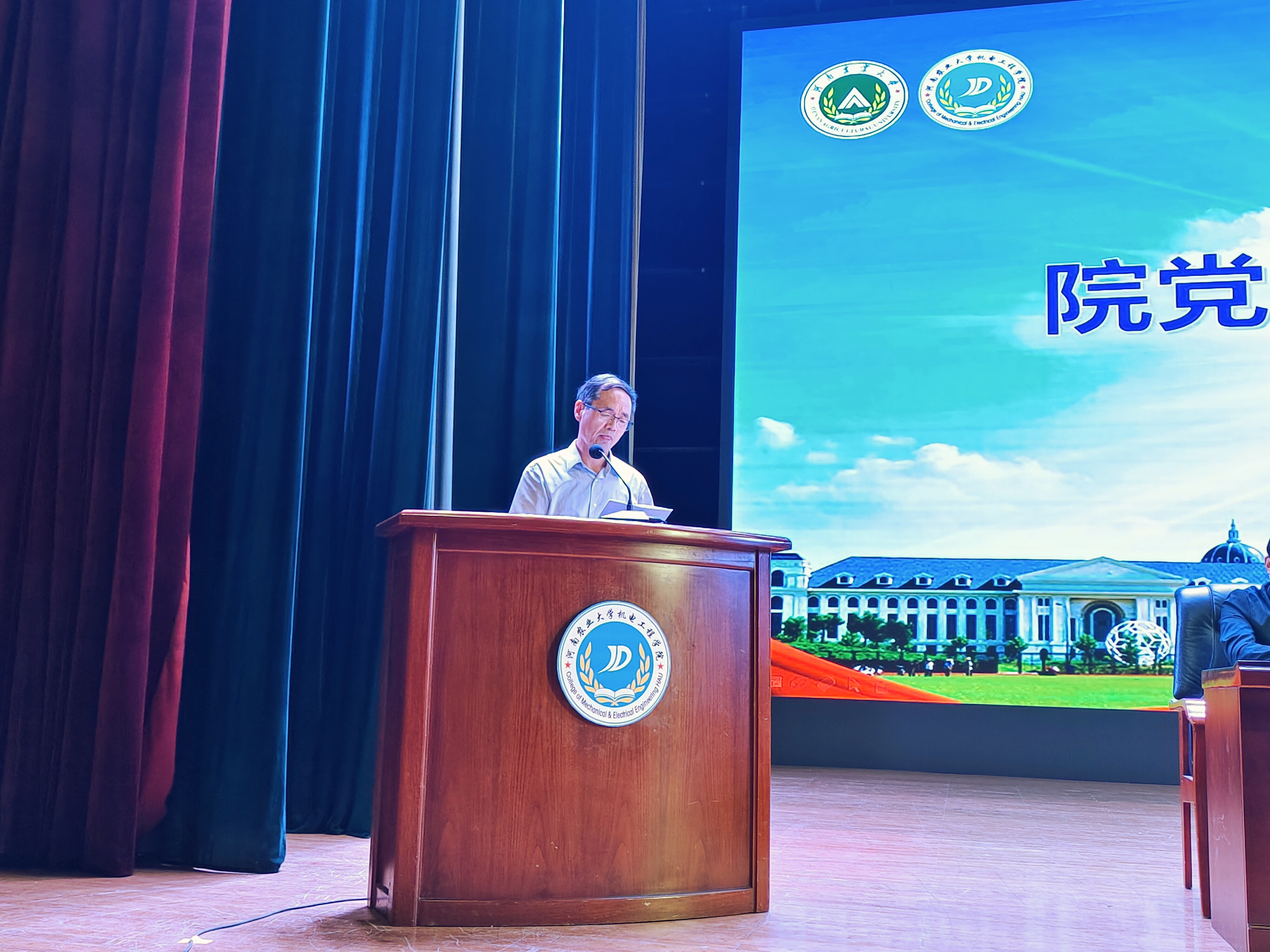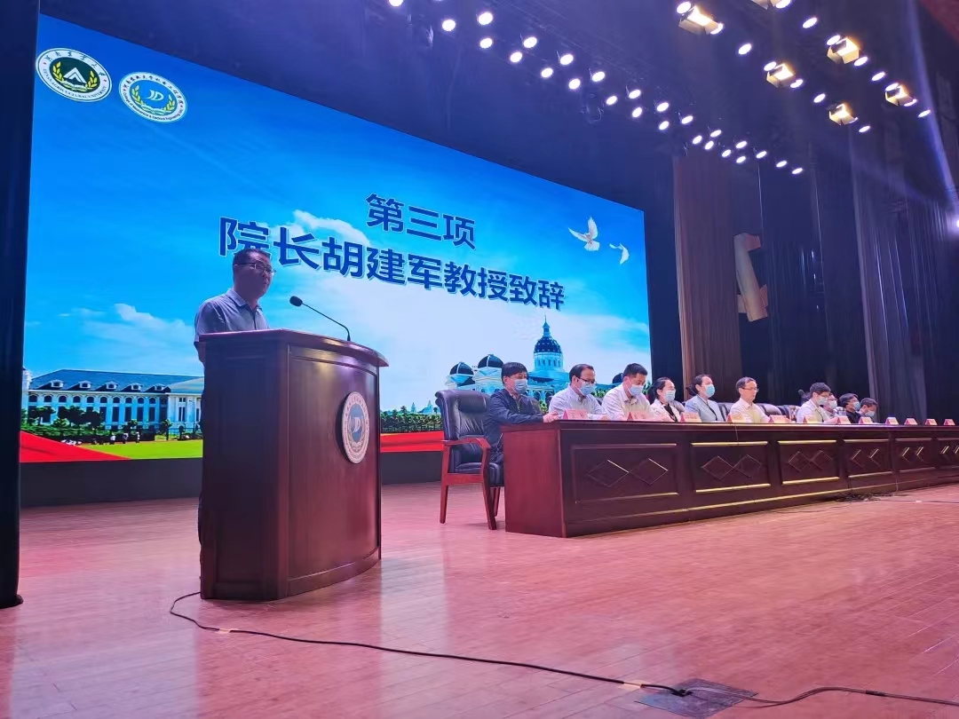 随后,胡建军进行致辞,他首先对新生致以诚挚的问候和衷心的祝福,紧接着,他围绕师资力量、科研成果、办学理念等方面介绍了学院的基本情况,并对全体新生提出了三点希冀,鼓励大家树立远大理想,筑牢思想根基;做到知行合一、严谨务实、将理论化为实践;主动担当、敢于作为,肩负起青年人的使命与责任。最后,他祝福各位新生学业有成、幸福成长,希望同学们能以机电为新起点,锐意进取,向着未来不断进发。