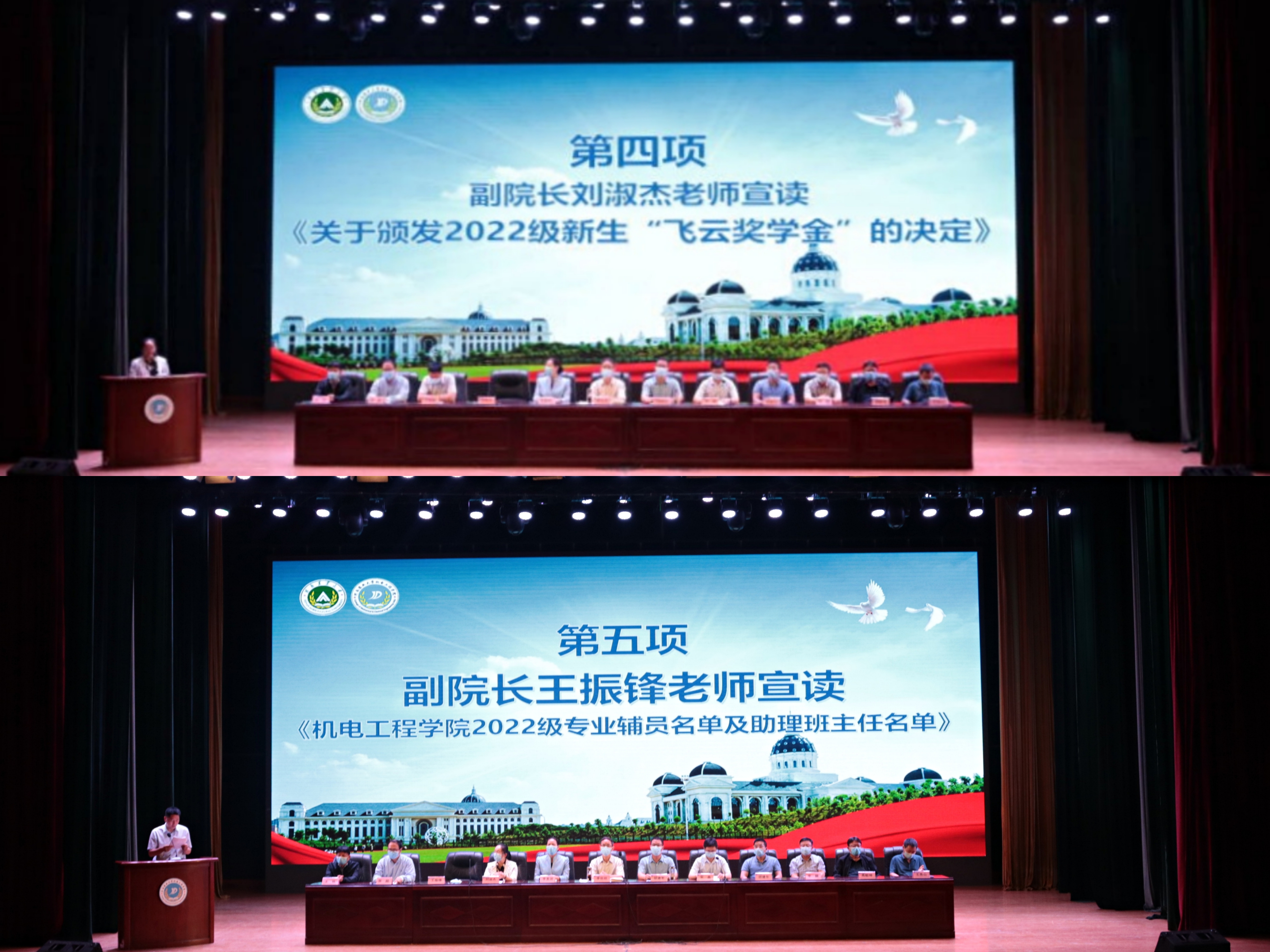 关于选聘2022级本科生新生专业辅导员及学生助理班主任的决定》,与会领导老师为获奖新生颁奖。