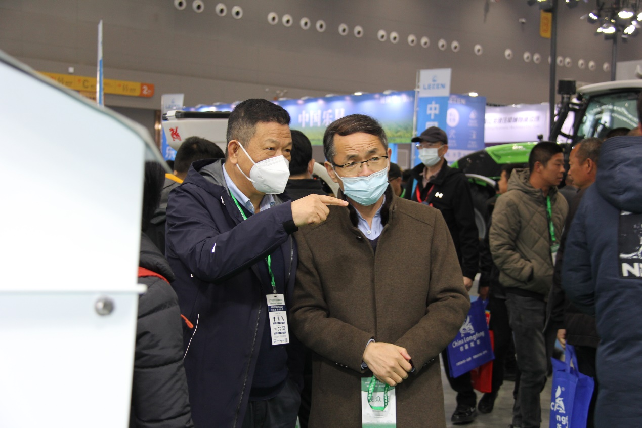 党委书记李世欣与王万章教授参观农机展品并交流