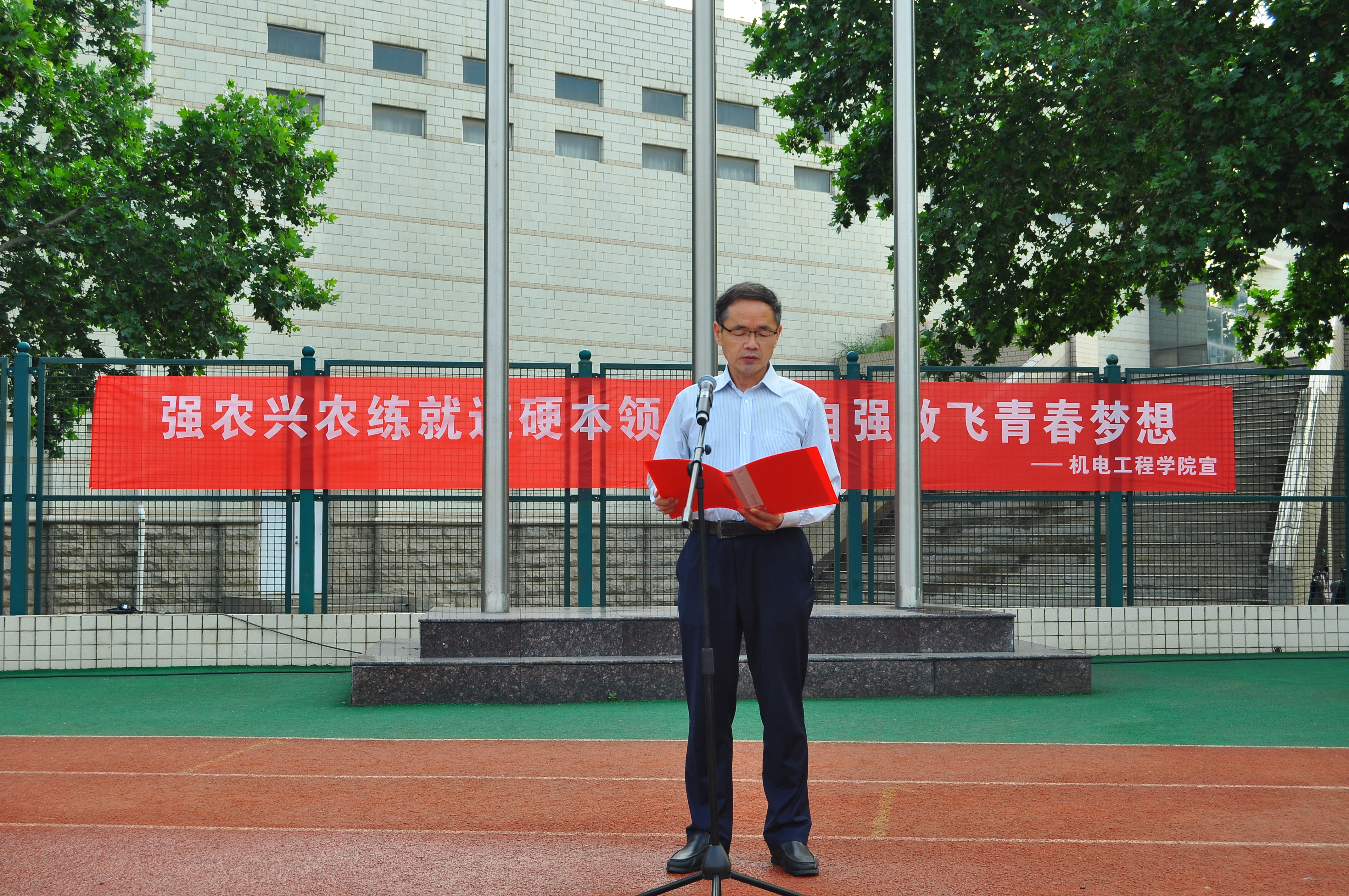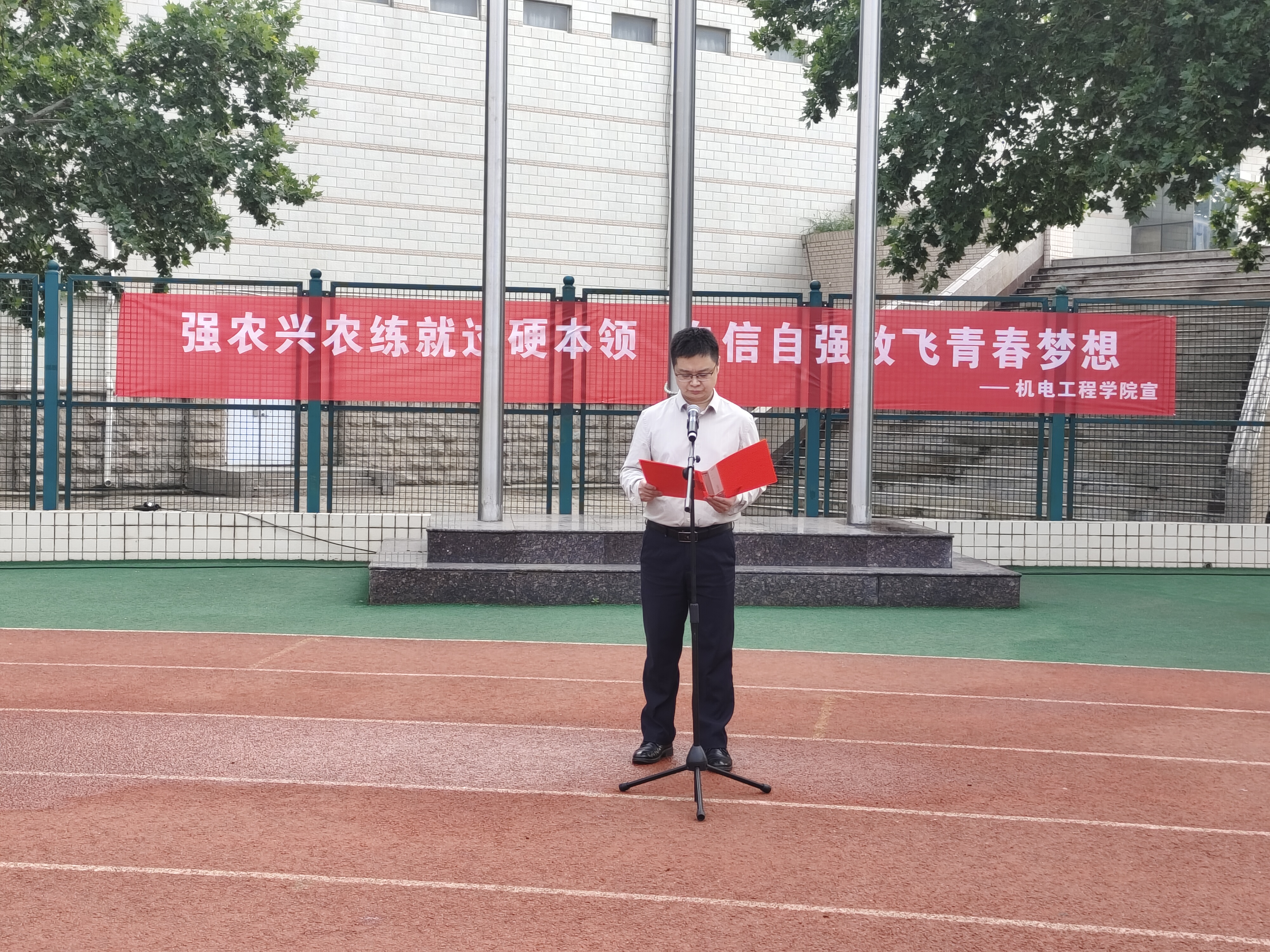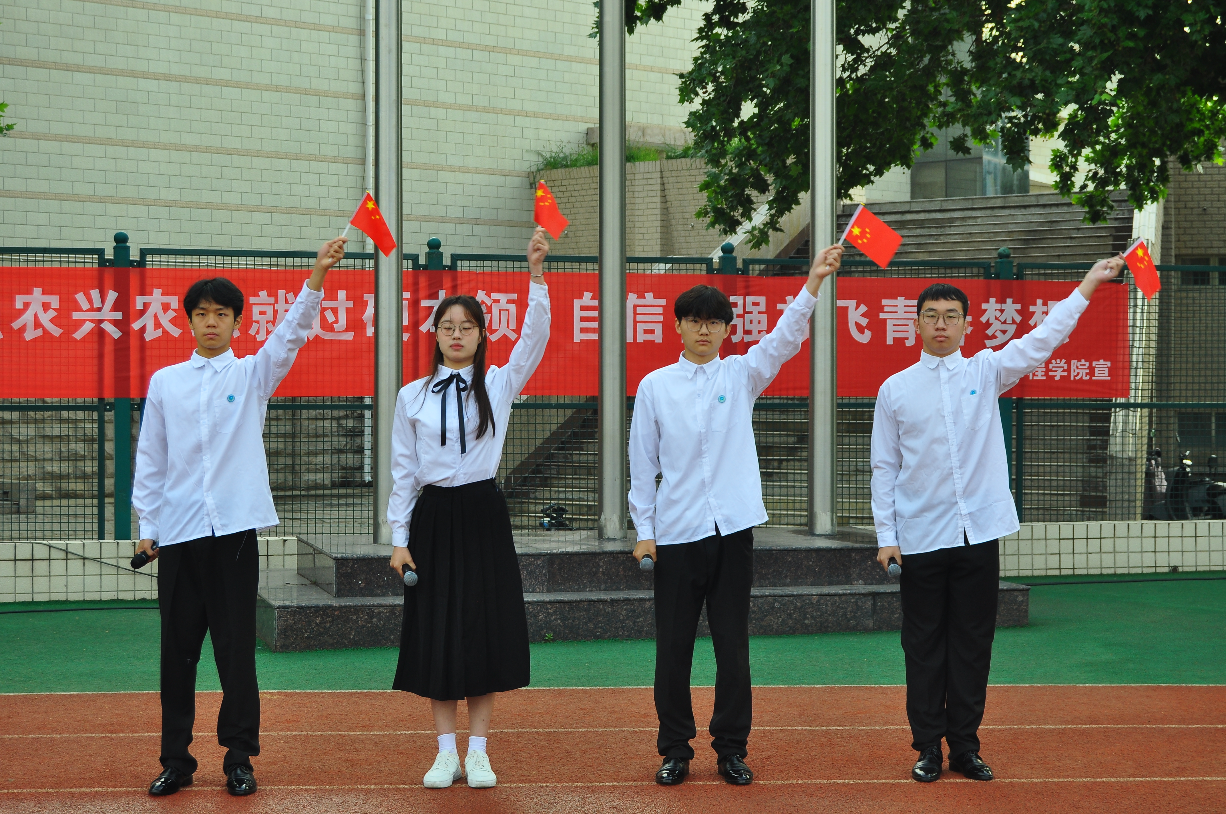 91社区 举行“强农兴农练就过硬本领,自信自强放飞青春梦想”升国旗仪式