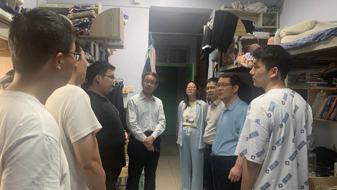 党委书记李世欣、院长胡建军、党委副书记宋晶、团委书记黄笑以及辅导员老师走访毕业生宿舍,了解毕业生的生活状况并为他们送上来自学院的真挚祝福。