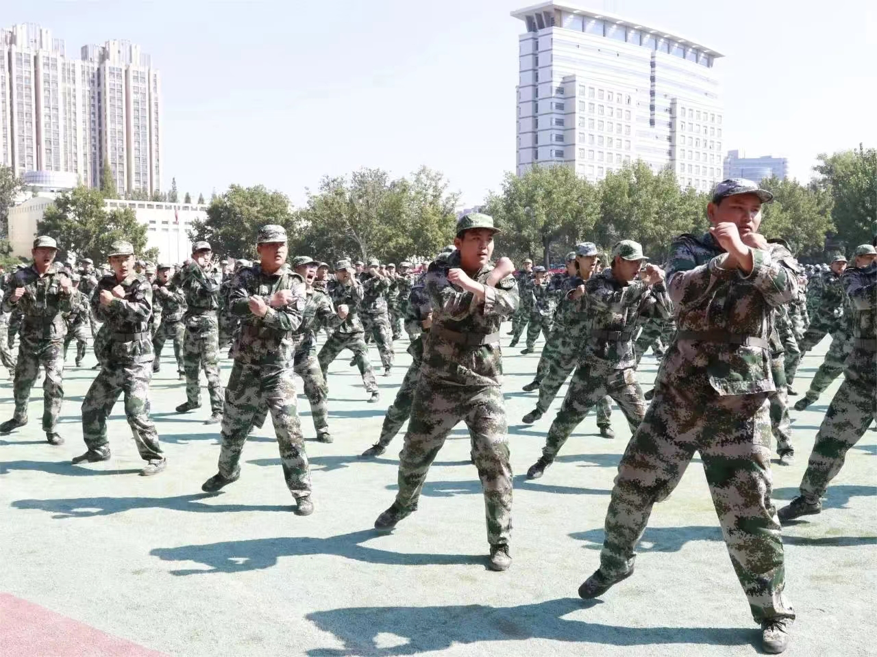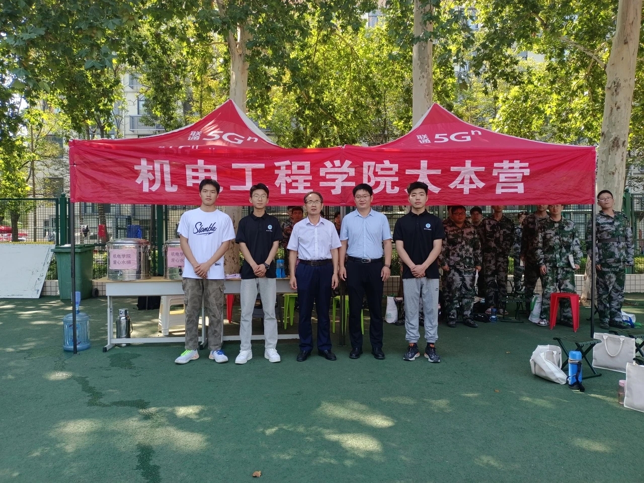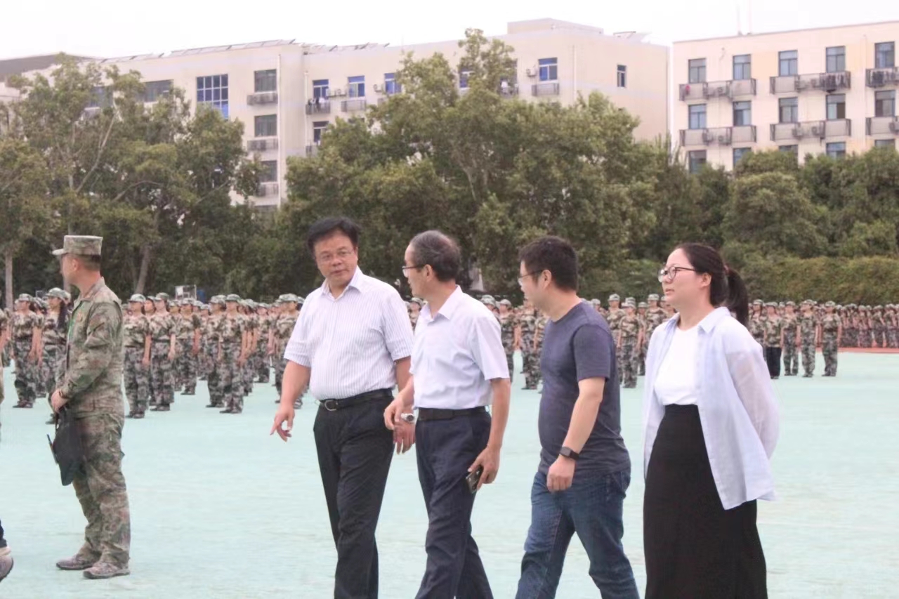 党委书记李世欣,党委副书记宋晶等老师一行在总教官的陪同下前往2023级学生军训团训练场地视察,向各教官以及全体23级新生表达亲切的关怀。