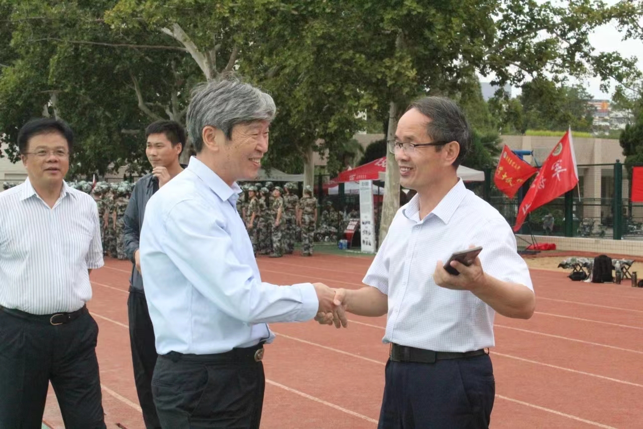 李世欣等院领导向学生了解军训状况及学生的感受理解,嘱咐学生在身体允许的条件下,要团结一致、奋力拼搏,展现出青春最靓丽的风采。