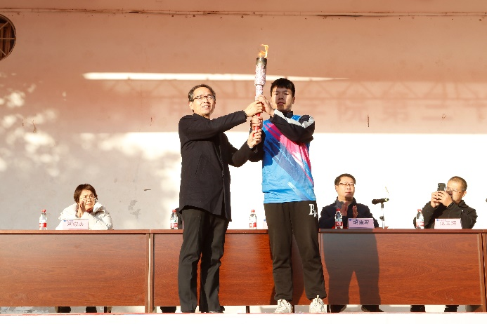 侯恒辉作为运动员代表进行发言。他通过泰戈尔“生命在于运动”的名言告诉同学们体育的重要性,他认为运动会的举办,能够极大丰富学生的文化生活,弘扬集体主义、爱国主义精神,增强91社区