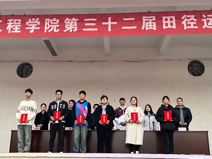第三十二届田径运动会。院党委书记李世欣,院长胡建军,党委副书记宋晶,副院长刘淑杰、胡建东、王振锋以及团委老师出席开幕式,22级、23级全体同学参加此次运动会。体育学院范玉辉老师担任运动会总裁判长,开幕式由宋晶主持。