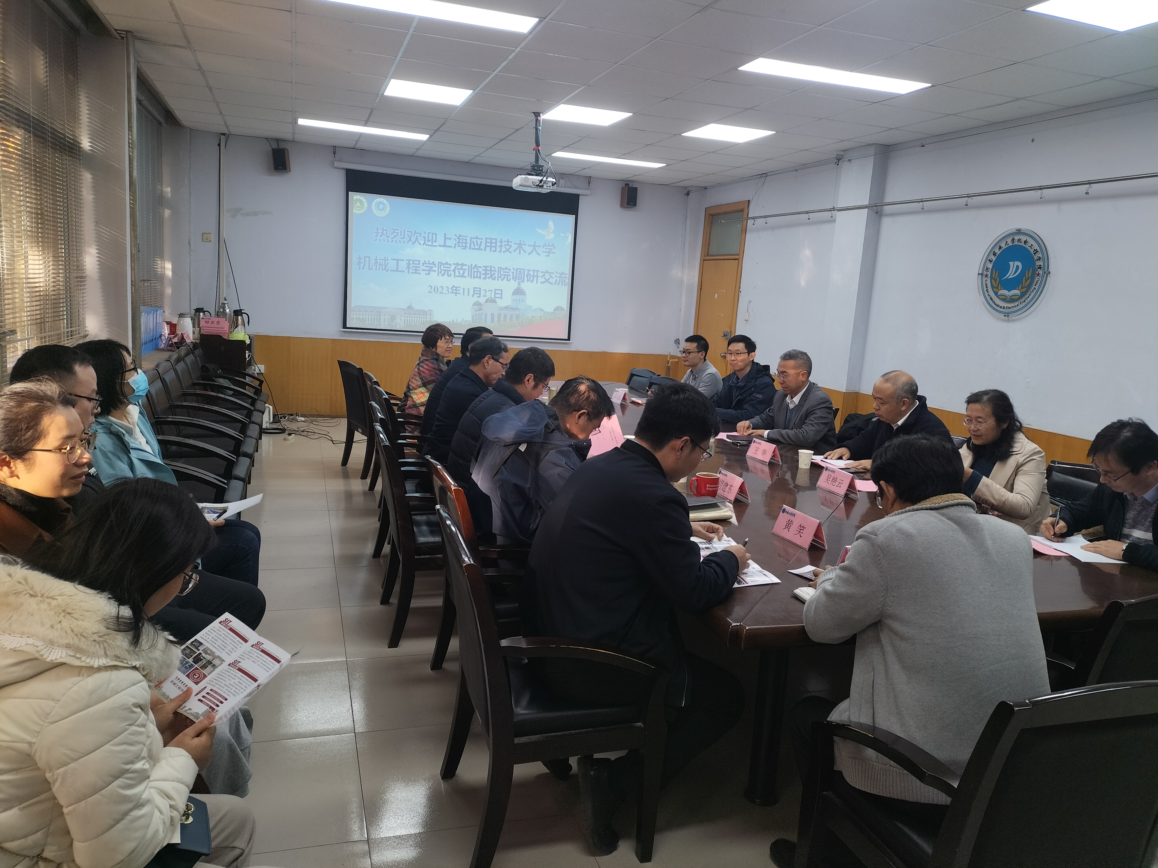 座谈会上,李世欣代表学院对上海应用技术大学机械工程学院一行的到来表示热烈欢迎,胡建军院长介绍了学院整体发展历程、学科建设和科学研究等情况。杨瑞君介绍了上海应用技术大学校院基本情况和本次调研目的。双方就人才培养方案、课程体系建设,以及工程教育认证相关工作进行了经验交谈。