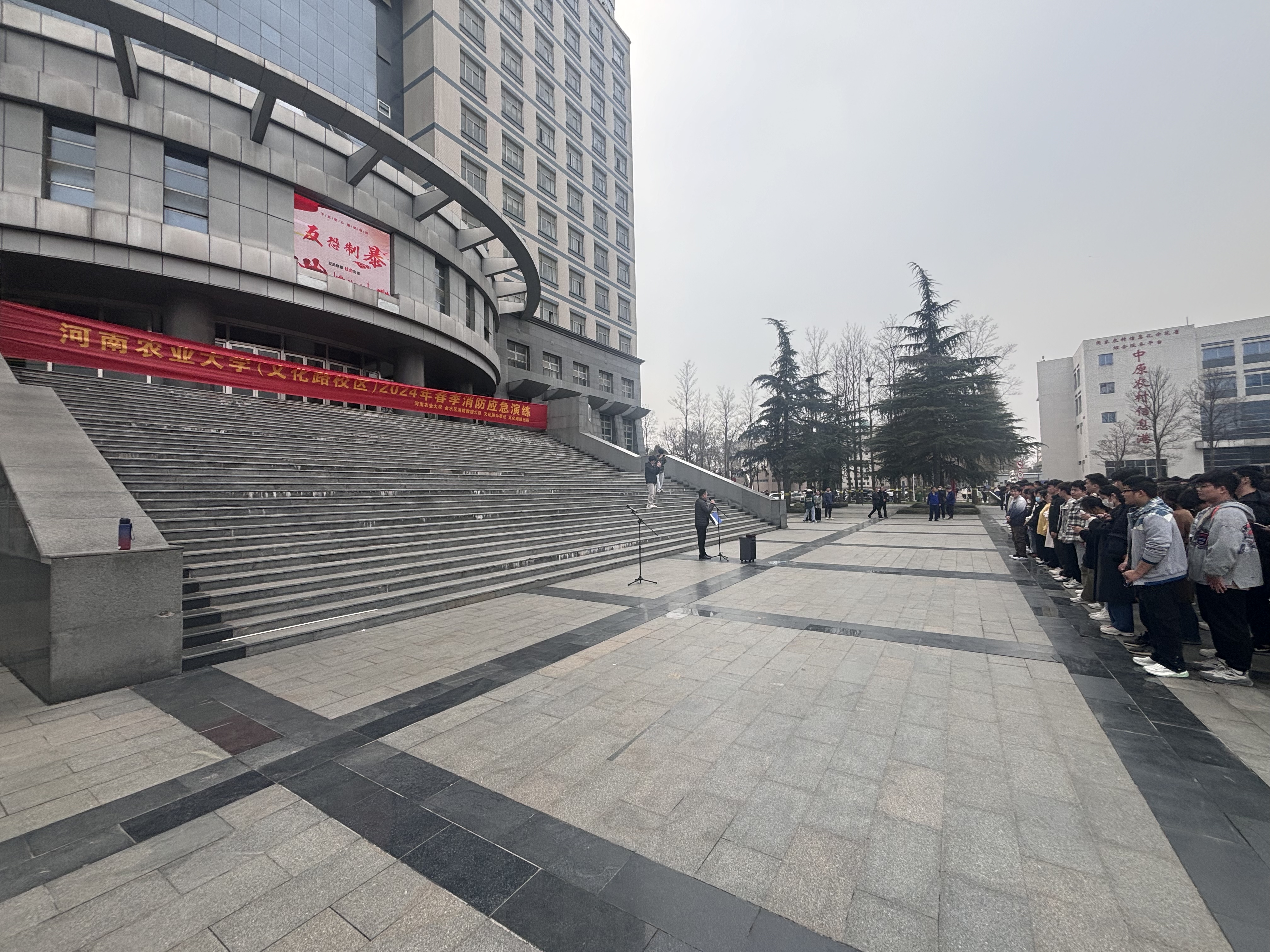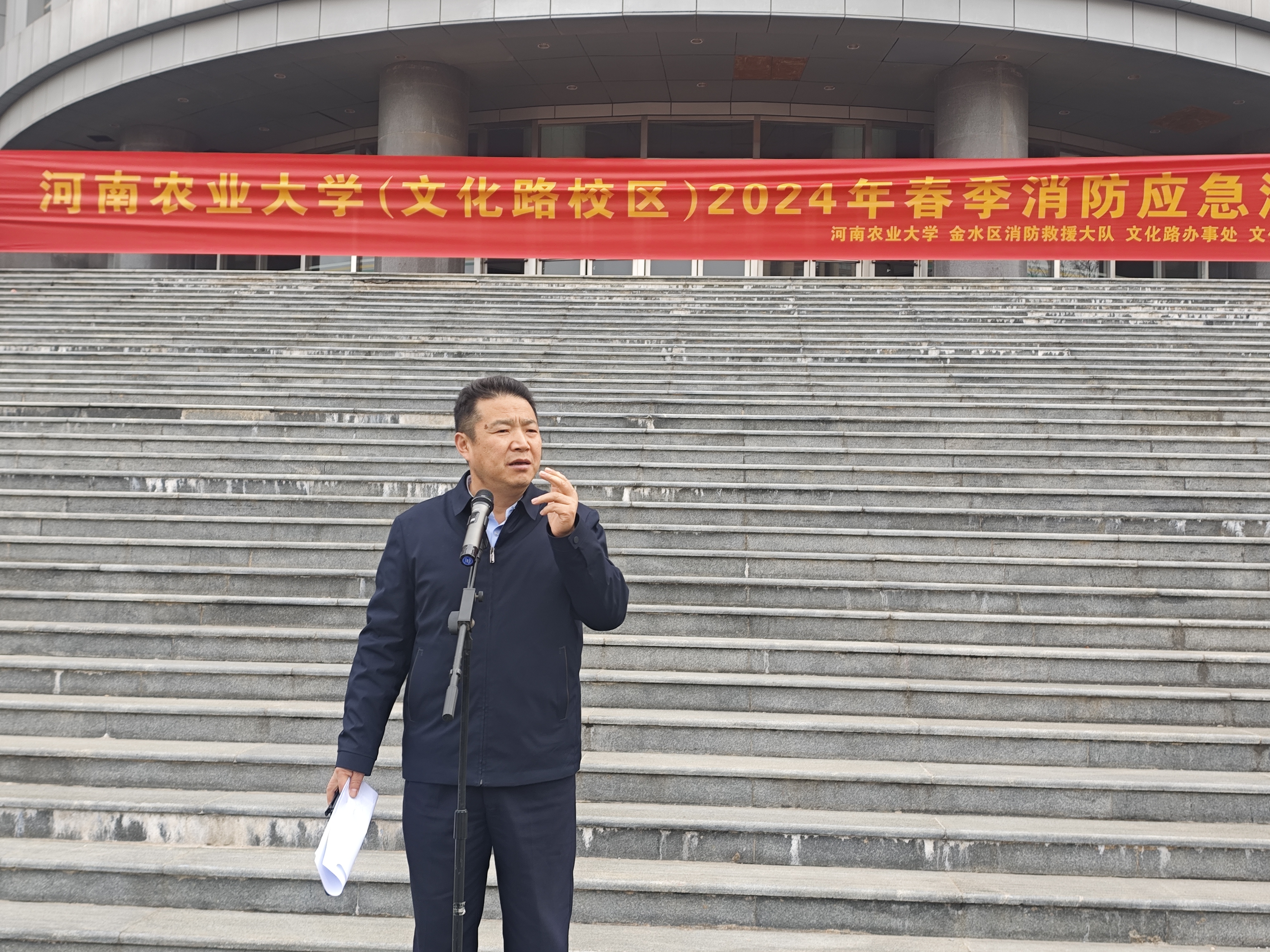 研究生代表梅玉爽发表消防演练感想。他表示,通过这次现场演练,近距离体会到了注重校园消防安全的重要性,内心对学校近期开展校园消防隐患排查工作有了更深刻的理解,并保证在今后会牢牢筑起安全隐患意识,为保障校园安全尽到自身的责任与义务。最后,总指挥发表总结讲话。他指出,本次消防应急逃生预案演练,消防大队指挥科学有效,全体师生积极配合,取得了很不错的成效。希望全体师生能通过此次演练,提高自身安全防范意识,将“安全无小事、防患于未然”的理念铭记于心。
