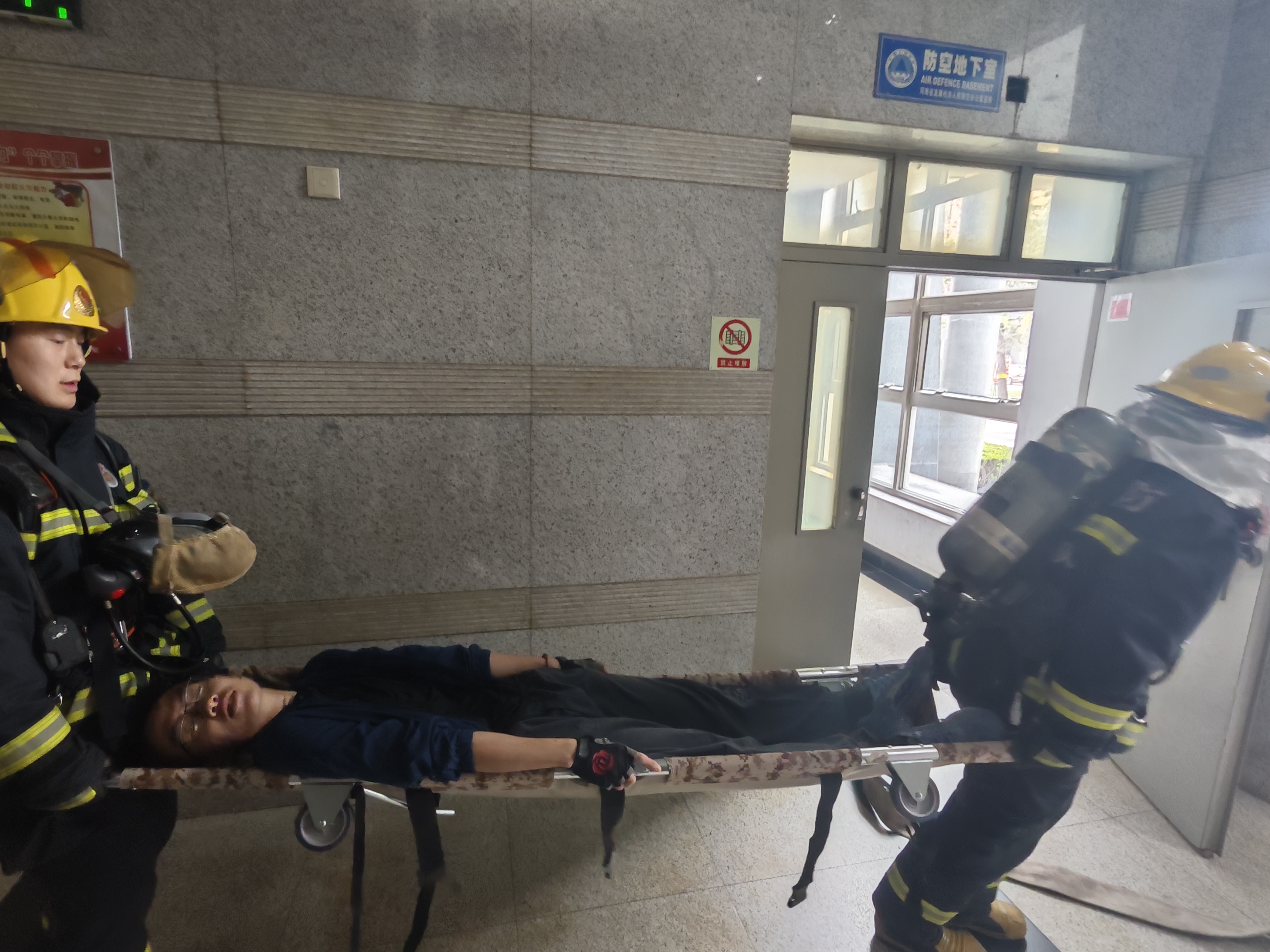 本次演练,学校邀请到金水区消防救援大队,为活动制定了详细的演练计划和周密安排。整个演练过程分为知识培训、模拟逃生、消防灭火几个版块。培训人员首先为师生们介绍了几个鲜活的校园火灾案例,借此强调了重视校园消防安全的重要性,随后为师生们详细讲解了逃生技巧和疏散要求,对各类安全问题的处理进行了引导。随后开始了模拟逃生演练。本次模拟演练失火原因为学生在机房对电源操作不当,引起失火。随着急促的警报铃声响起,各楼层安全引导员按照既定方案迅速组织学生进行疏散,并利用担架及时将现场受伤人员进行转移。同学们纷纷用湿毛巾捂住口鼻,迅速有序地撤离到学校开阔安全地带。疏散过程中,全体学生听从指挥、保持动作要令,队列有序前进,整个演练活动达到了预期目标。