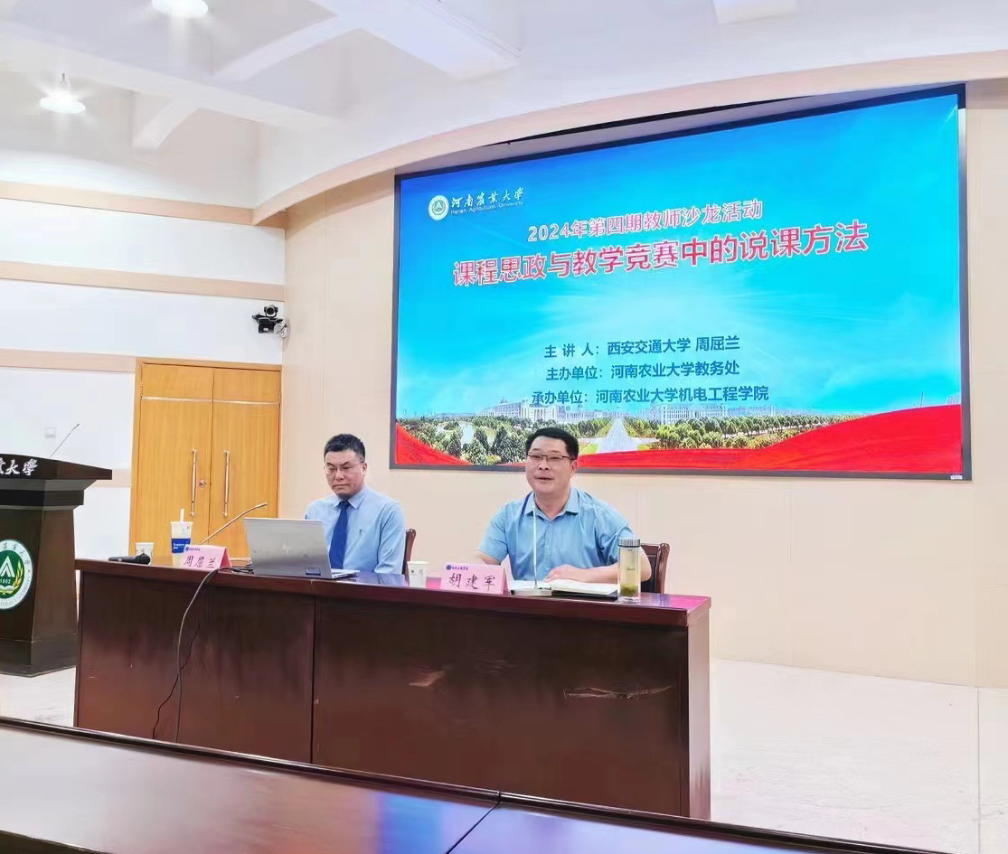 承办。首届全国高校教师教学创新大赛一等奖和第三届全国高校微课大赛一等奖获得者、国家线上线下混合式一流课程负责人、西安交通大学教授周屈兰作“课程思政与教学竞赛中的说课方法”专题报告。院长胡建军主持报告会。