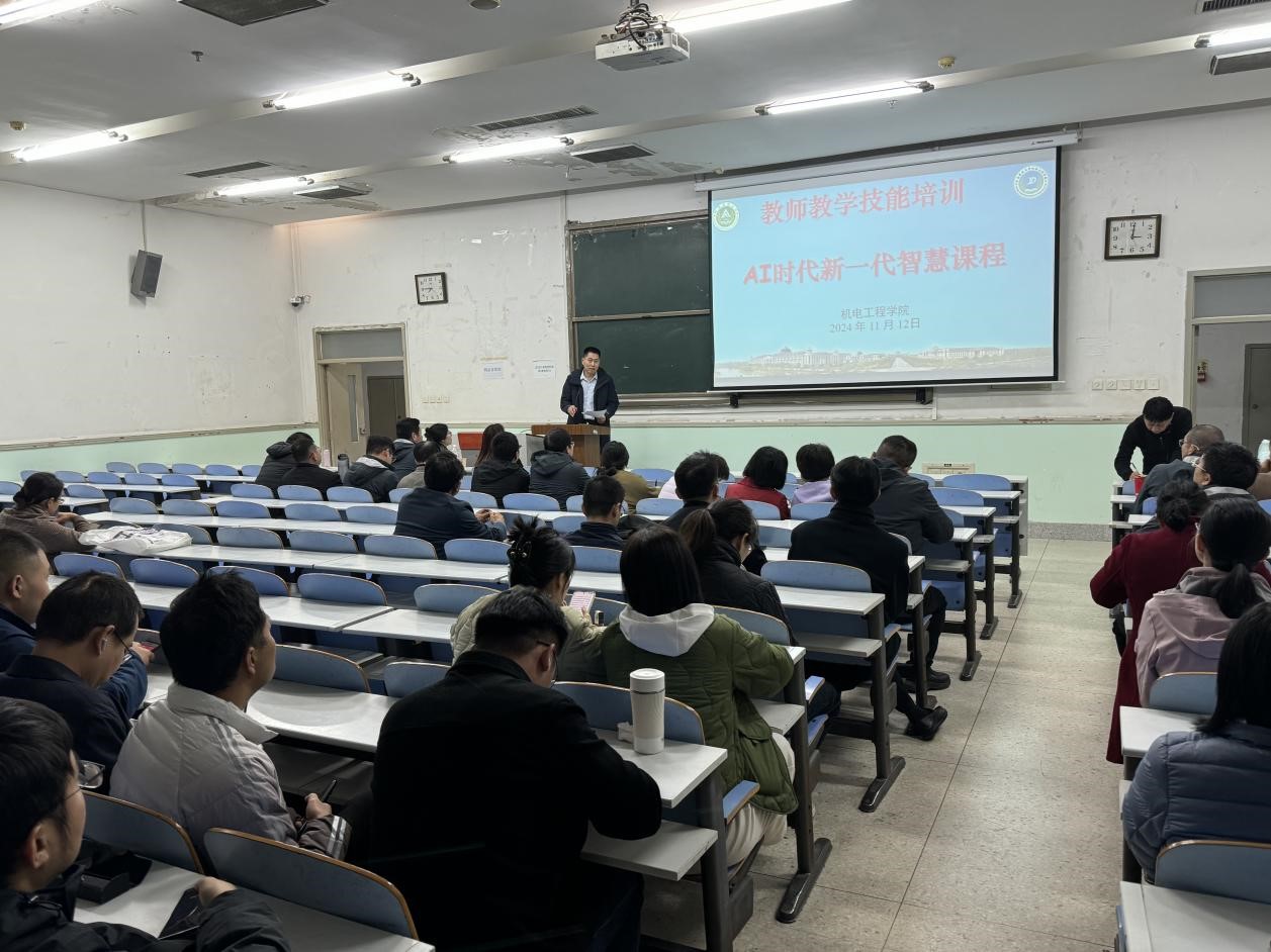 为促进现代信息技术与教育教学融合创新,11月12日下午,学院在工程楼102大教室举办“AI新时代智慧课程”专题报告会。学院邀请超星集团卢艺蕾讲师现场授课,学院全体教师参加报告会。报告会由副院长王振锋主持。