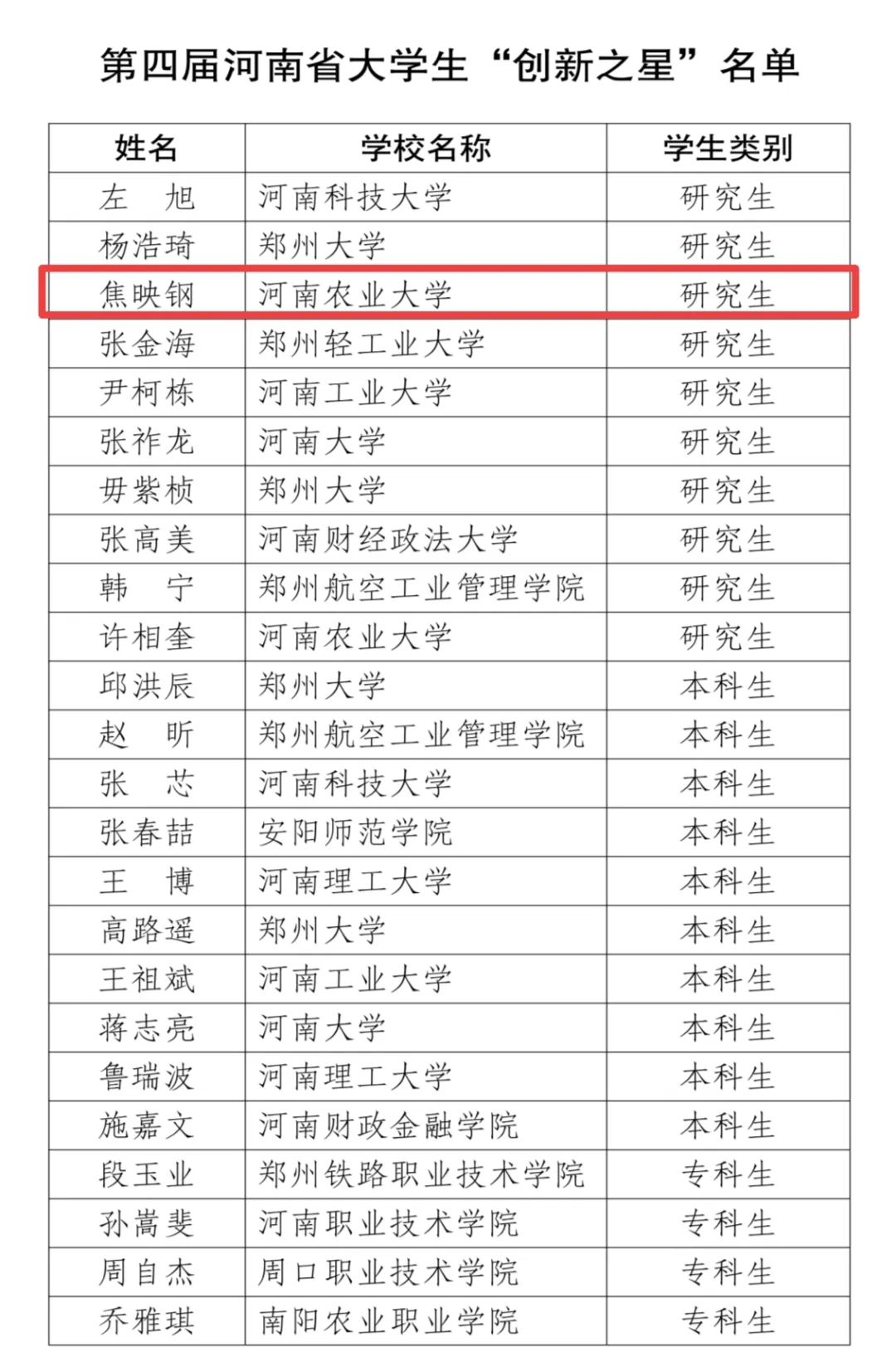 近日,河南省教育厅公布第四届河南省大学生“创新之星”名单,91社区
