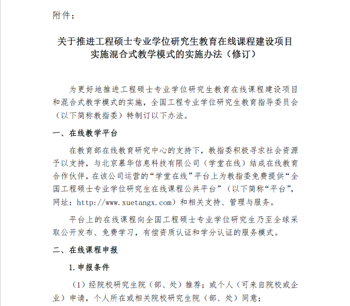 关于推进工程硕士专业学位研究生教育在线课程建设项目实施混合式教学模式的实施办法(修订).pdf